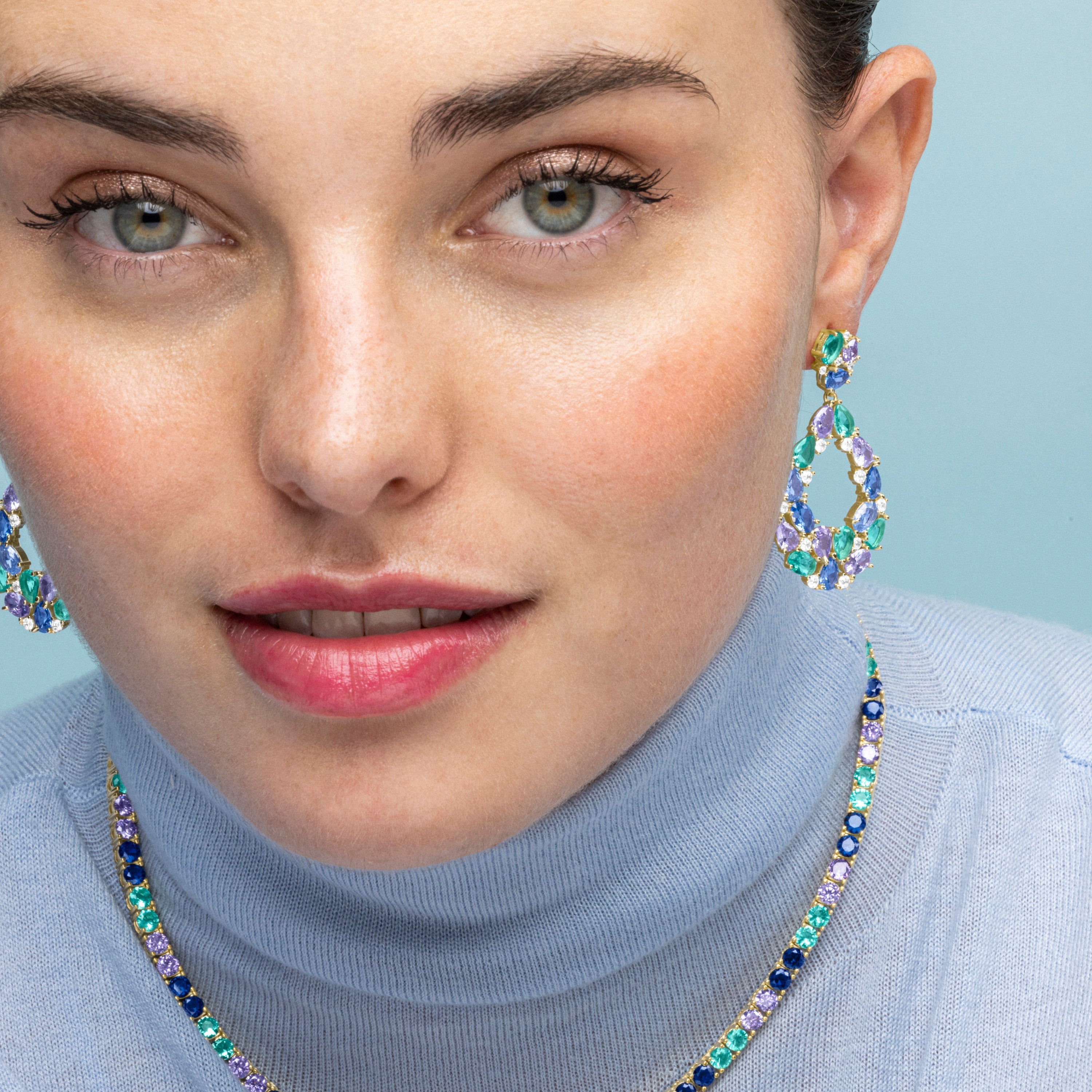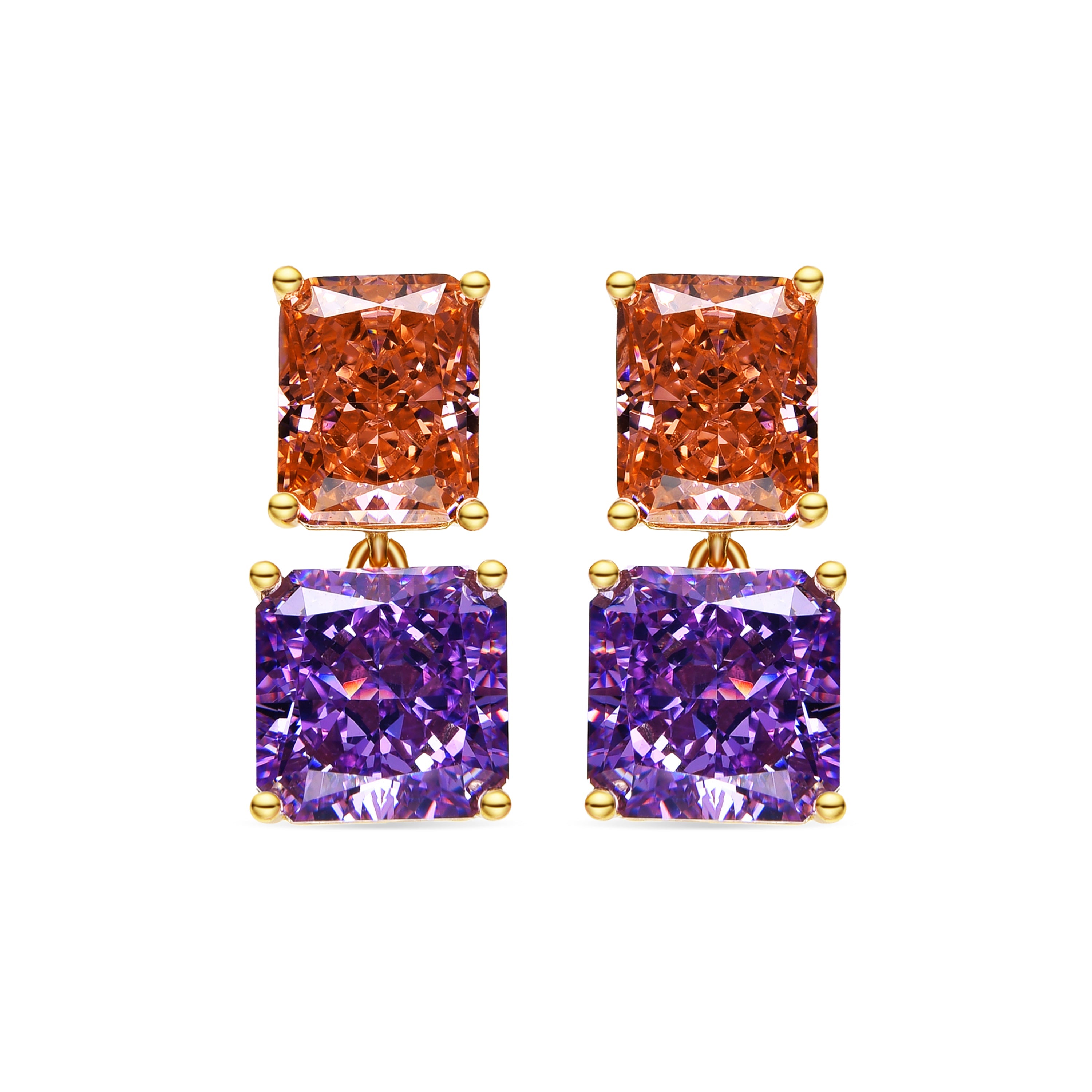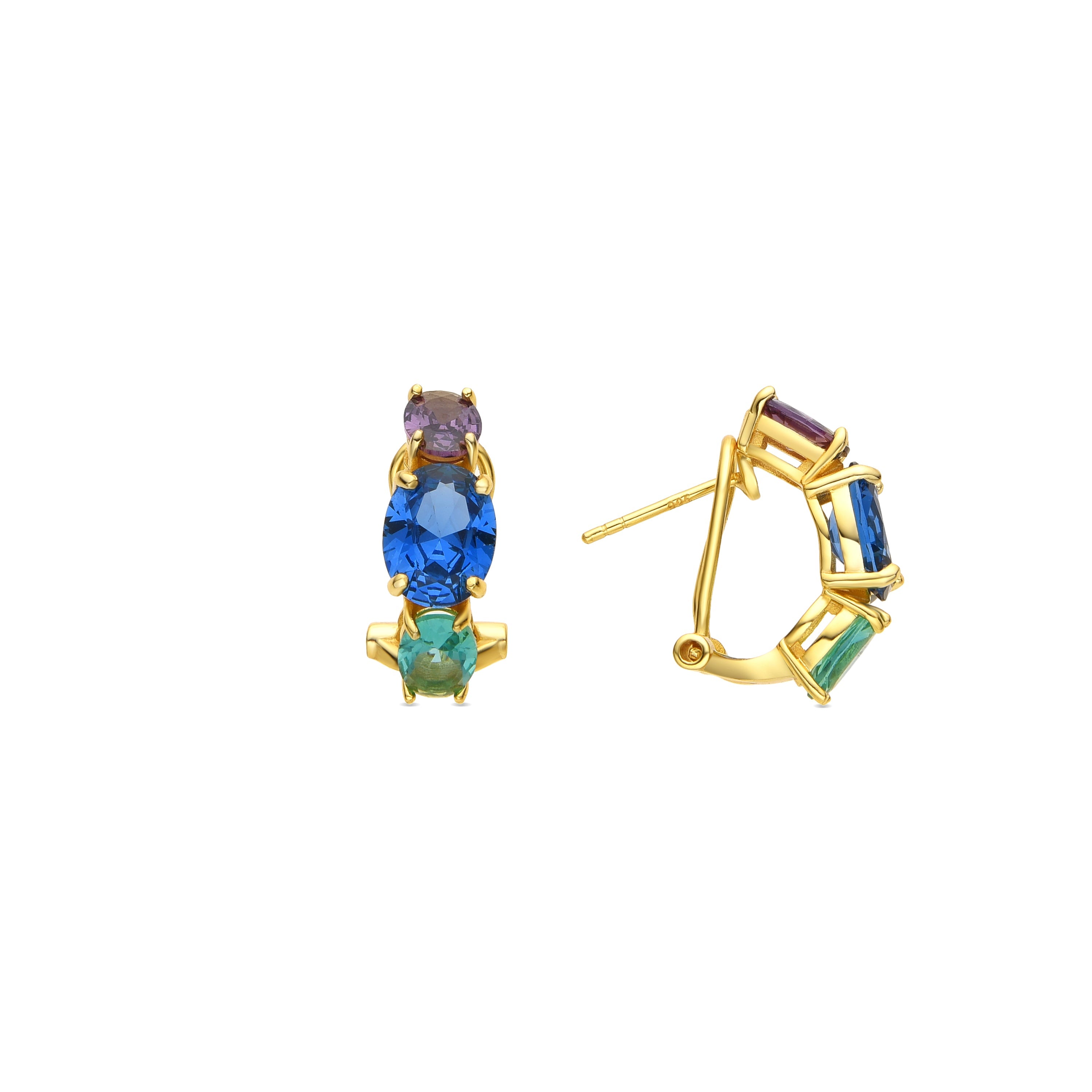 Pendientes de Plata de Ley 925 con Circonita Multicolor acabados en oro amarillo 18K - Wewi