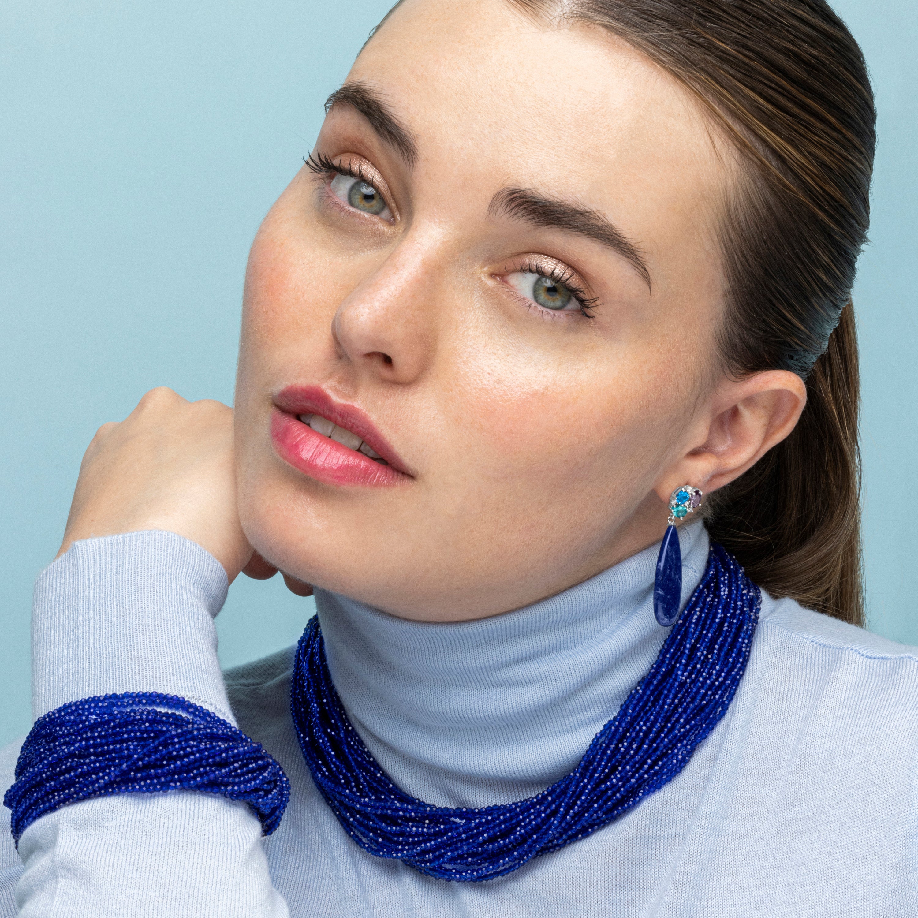 Pendientes de Plata de Ley 925 y Cuarzo Hidrotermal Multicolor acabado rodio - Mifa