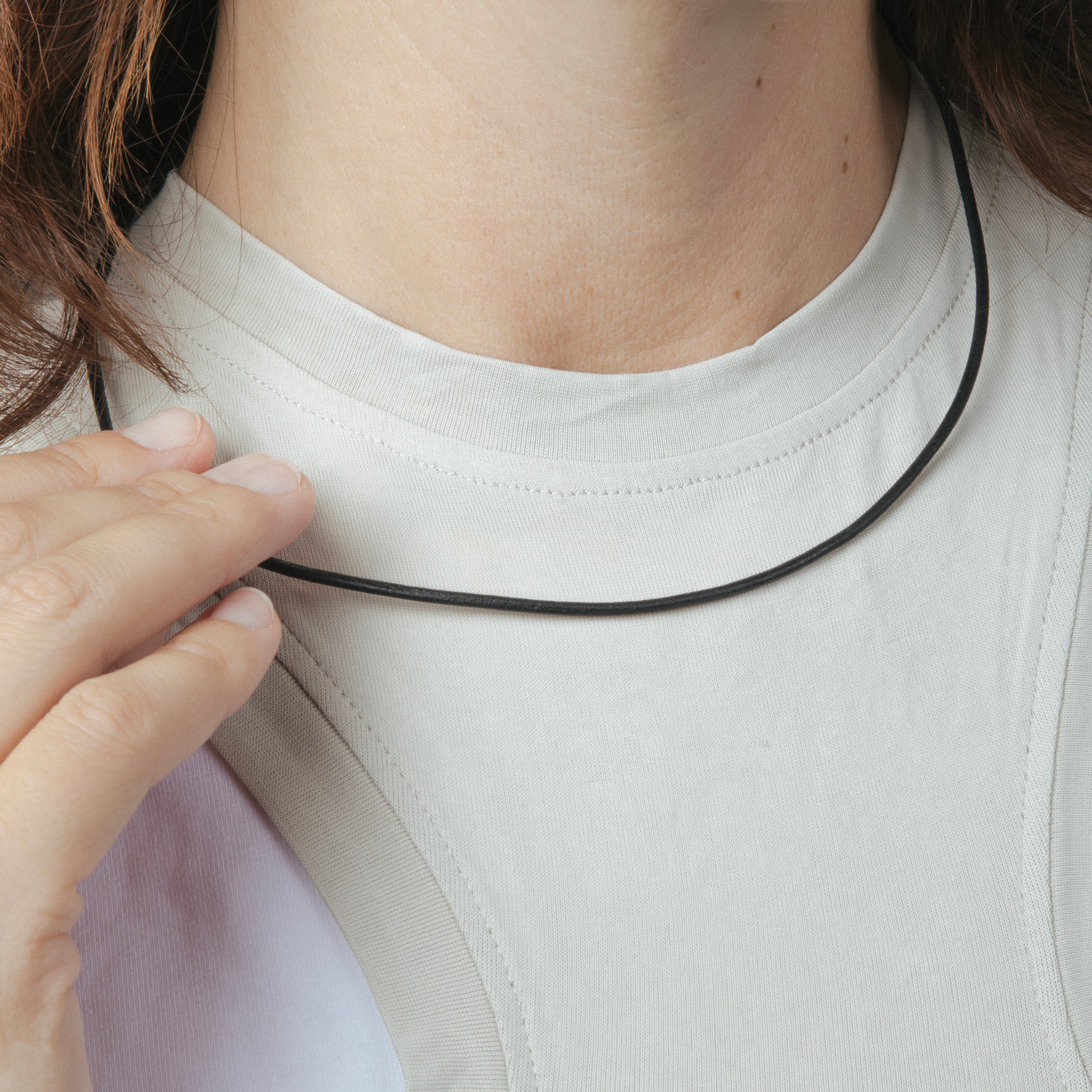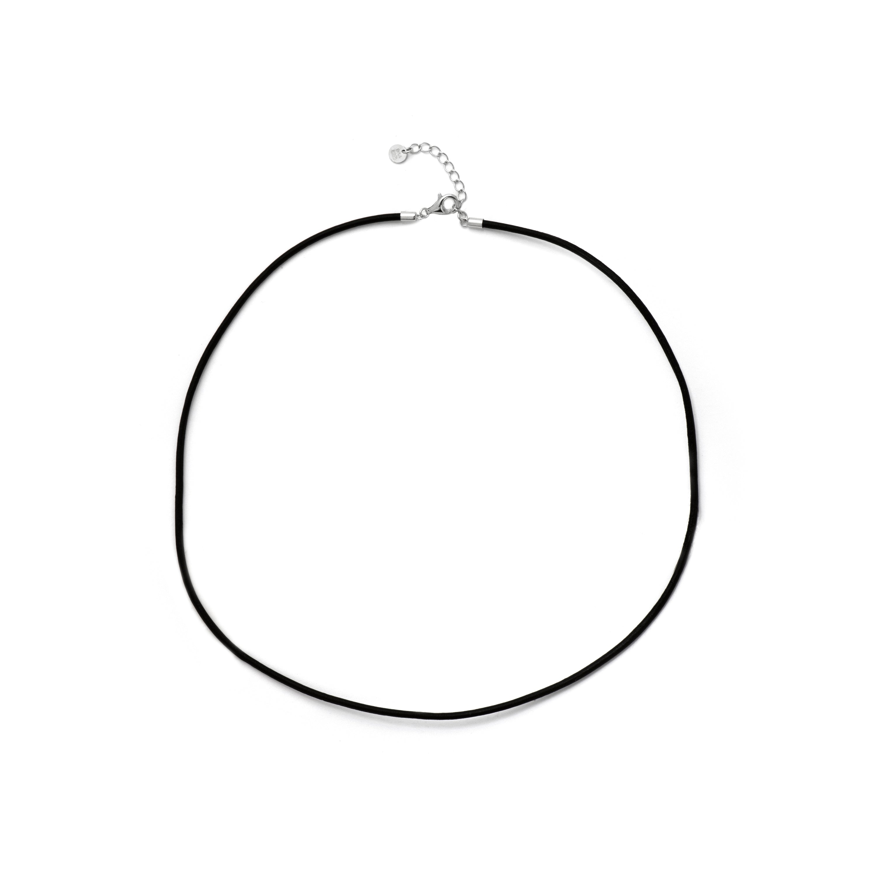 Cordón de 42cm de cuero negro y plata de ley 925 acabado rodio - Luxenter