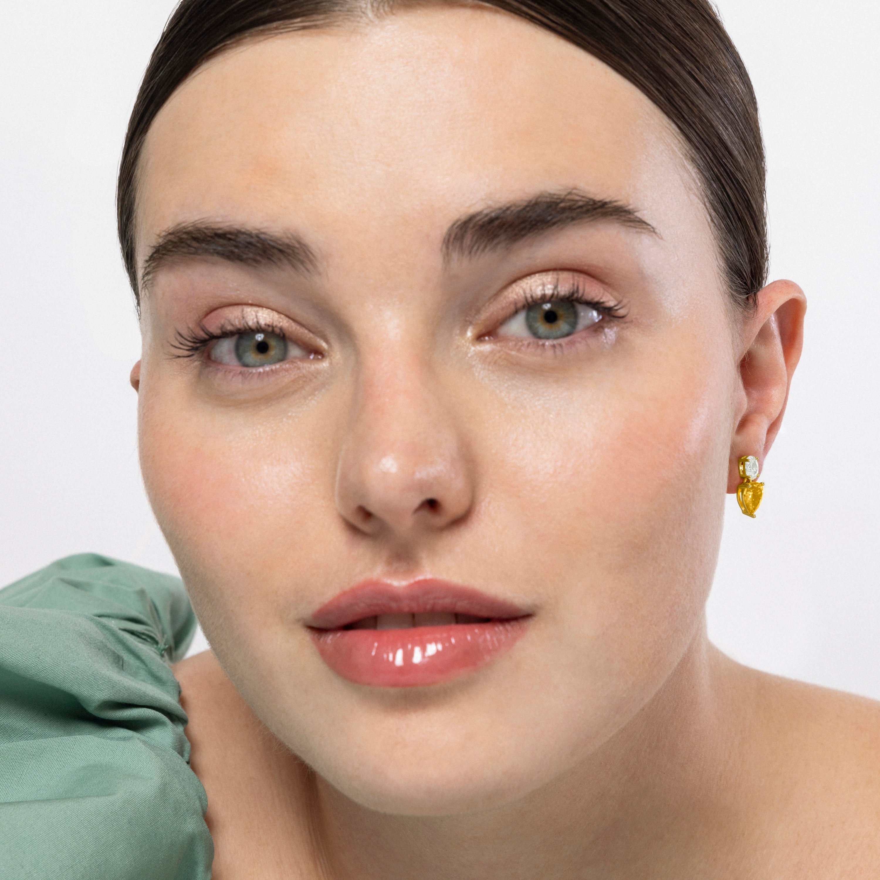 Pendientes Isre de Plata de Ley 925 y Padparadscha acabados en oro amarillo de 18k. Atelier transmite tendencia en cada joya, con diseños que se han ido adaptando a la evolución de la moda y de la mujer. Es la línea perfecta para mujeres únicas que quieren aportar un toque de color a su día a día.