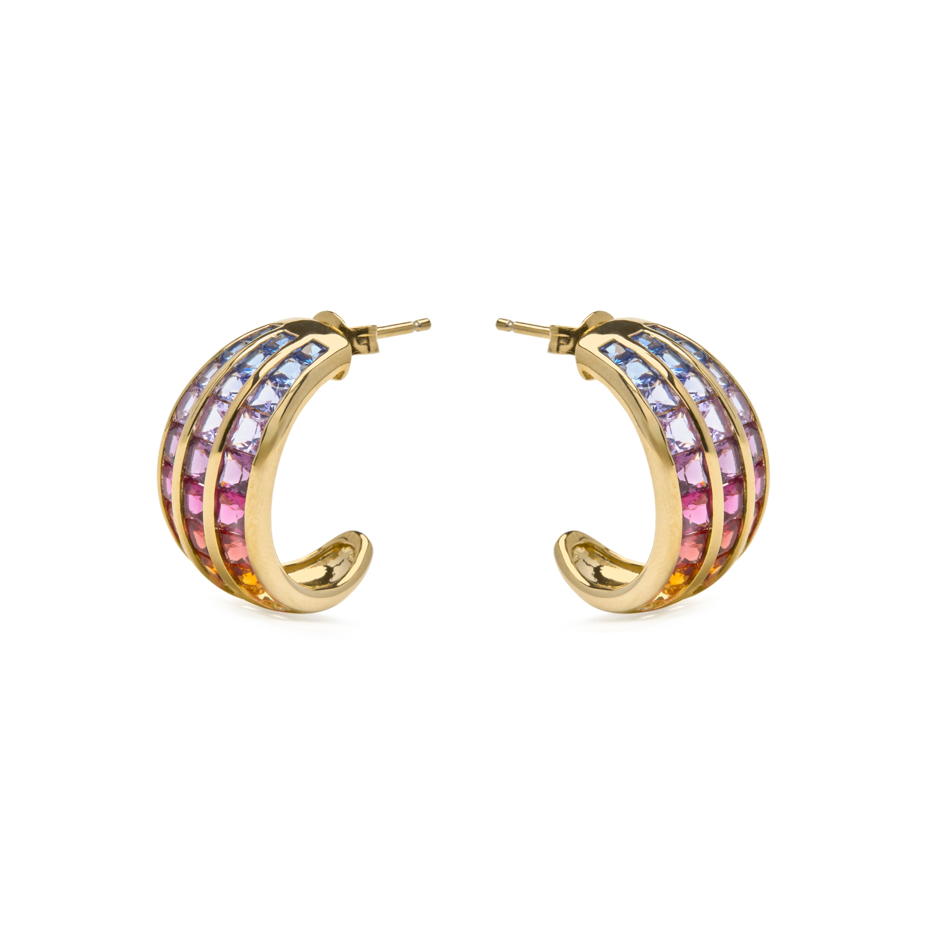 Pendientes Pilmad de Plata de Ley 925 y Circonita Multicolor acabado en Oro Amarillo 18k