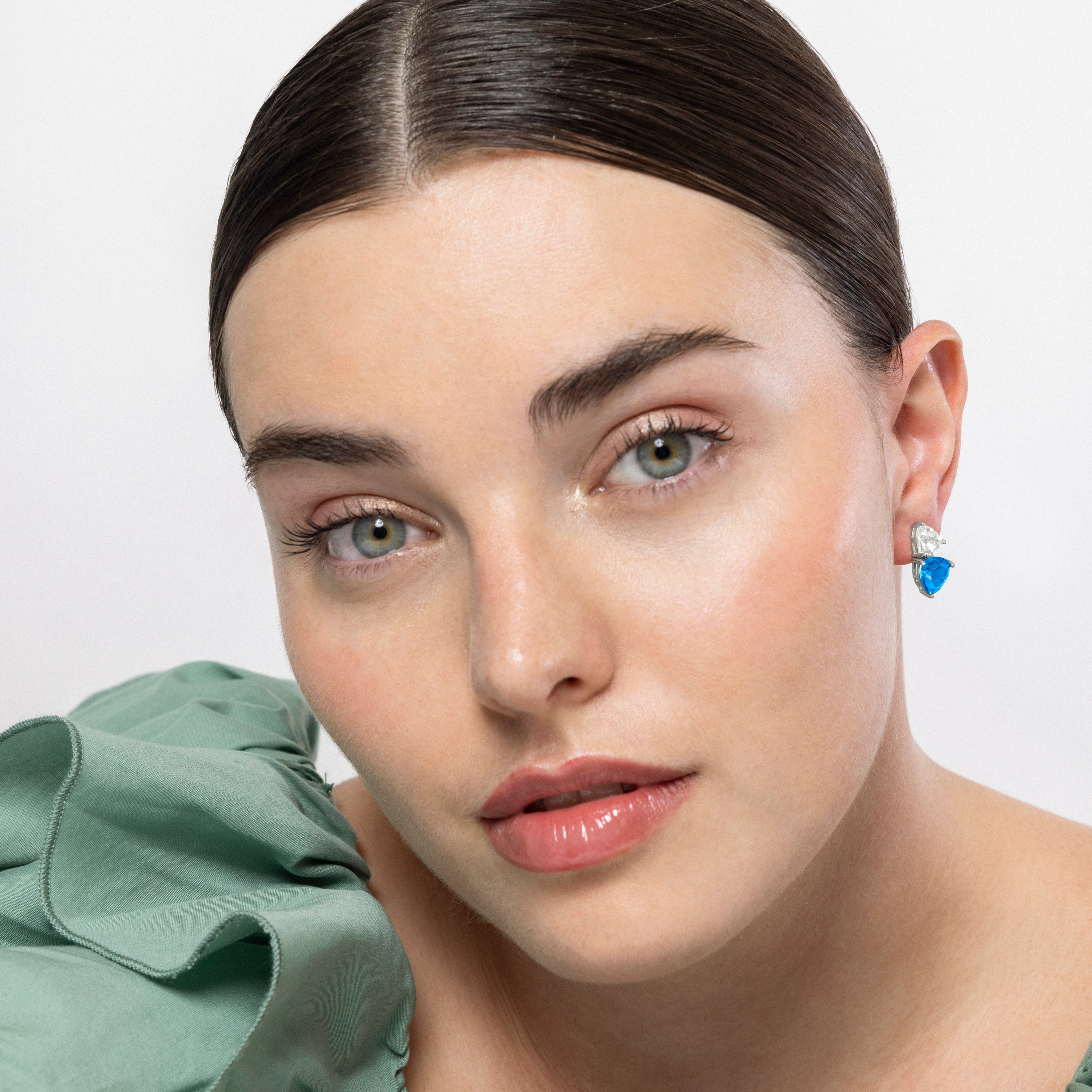 Pendientes Simtul de Plata de Ley 925 y Circonita Aguamarina acabados en rodio. Atelier transmite tendencia en cada joya, con diseños que se han ido adaptando a la evolución de la moda y de la mujer. Es la línea perfecta para mujeres únicas que quieren aportar un toque de color a su día a día.