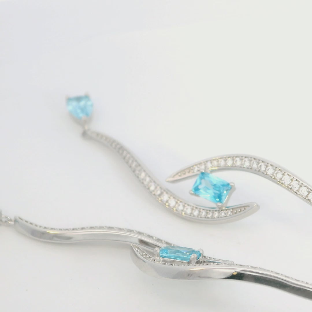 Pendientes Thyrod de Plata de Ley 925 y Circonita Aguamarina acabado rodio