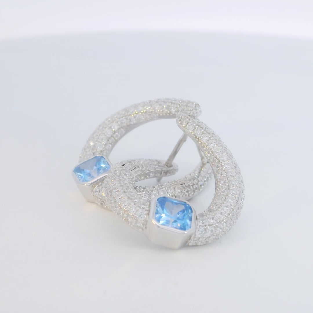 Pendientes Uzi de Plata de Ley 925 y Circonita Aguamarina acabado rodio