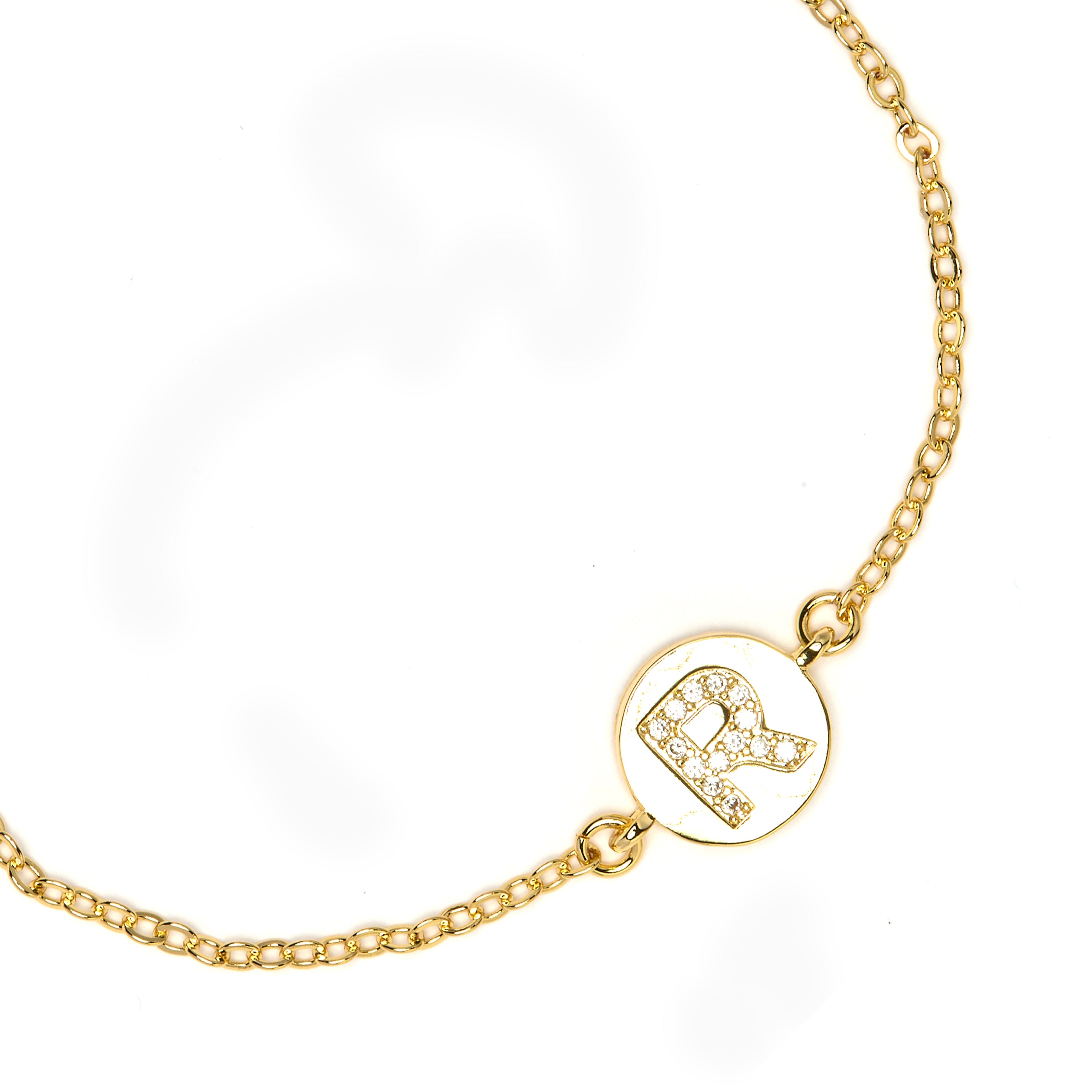 Pulsera Alphabet con Circonita Brillante acabado oro amarillo 18k