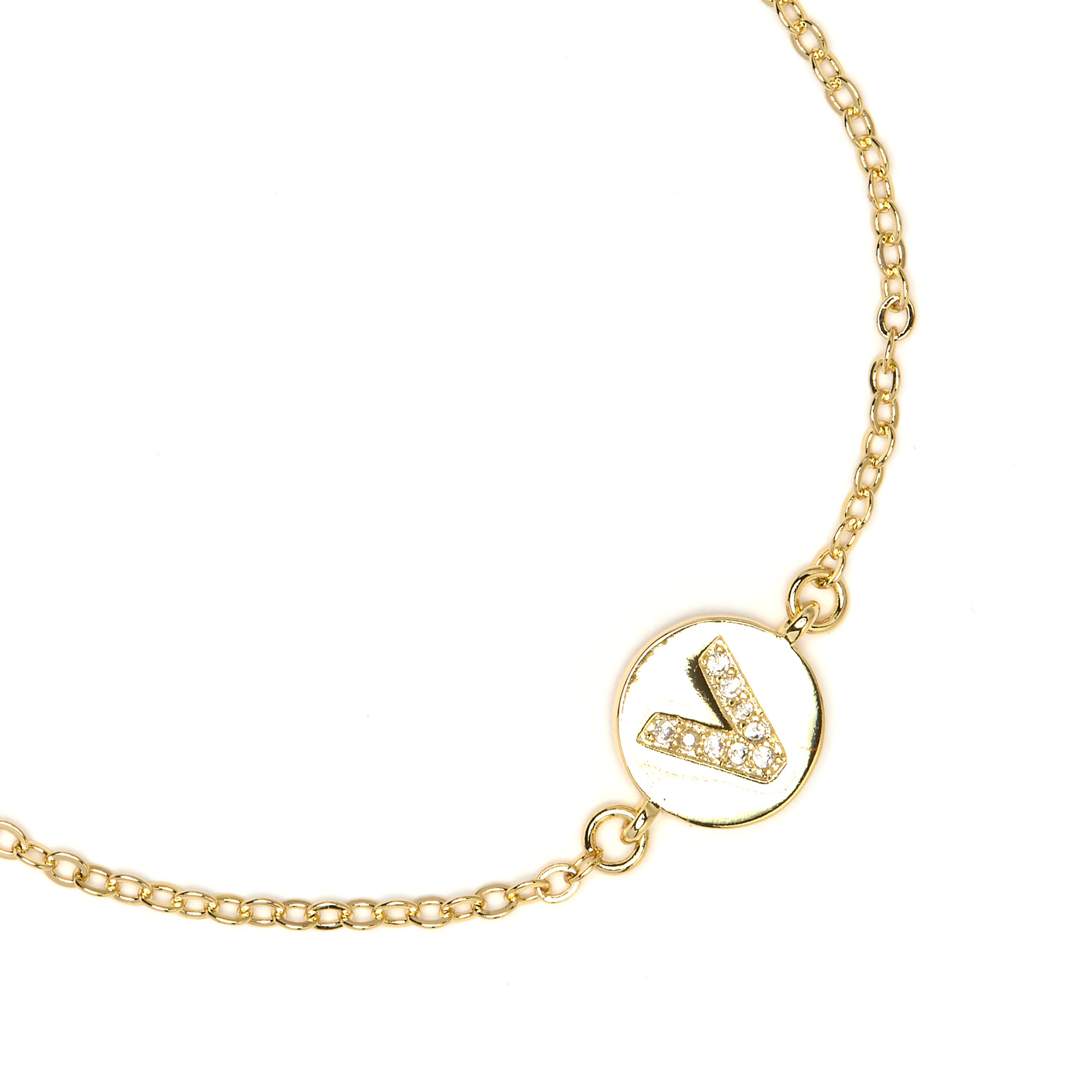 Pulsera Alphabet con Circonita Brillante acabado oro amarillo 18k