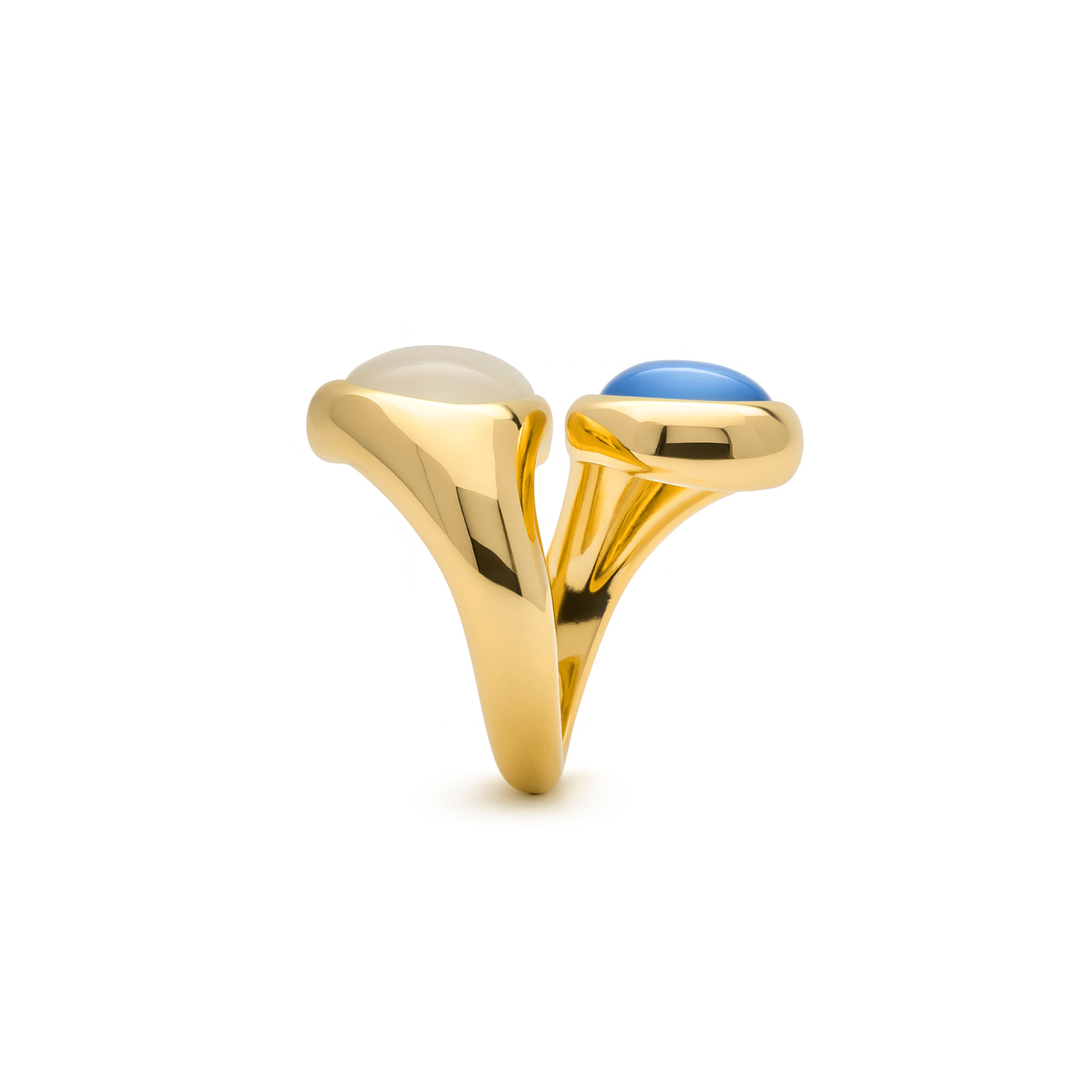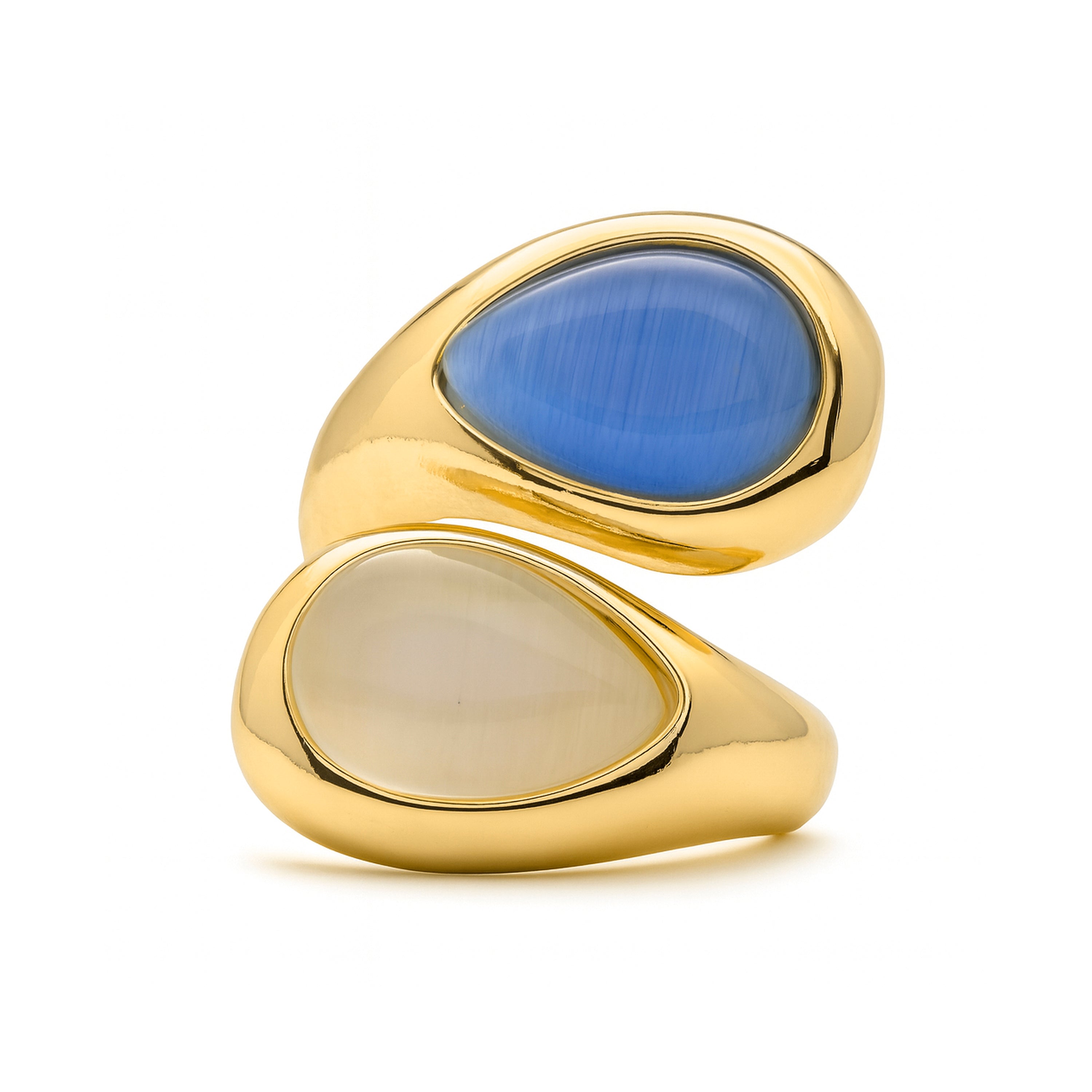 Anillo de Ojo de Gato Azul acabado en oro amarillo 18k - Anxobu