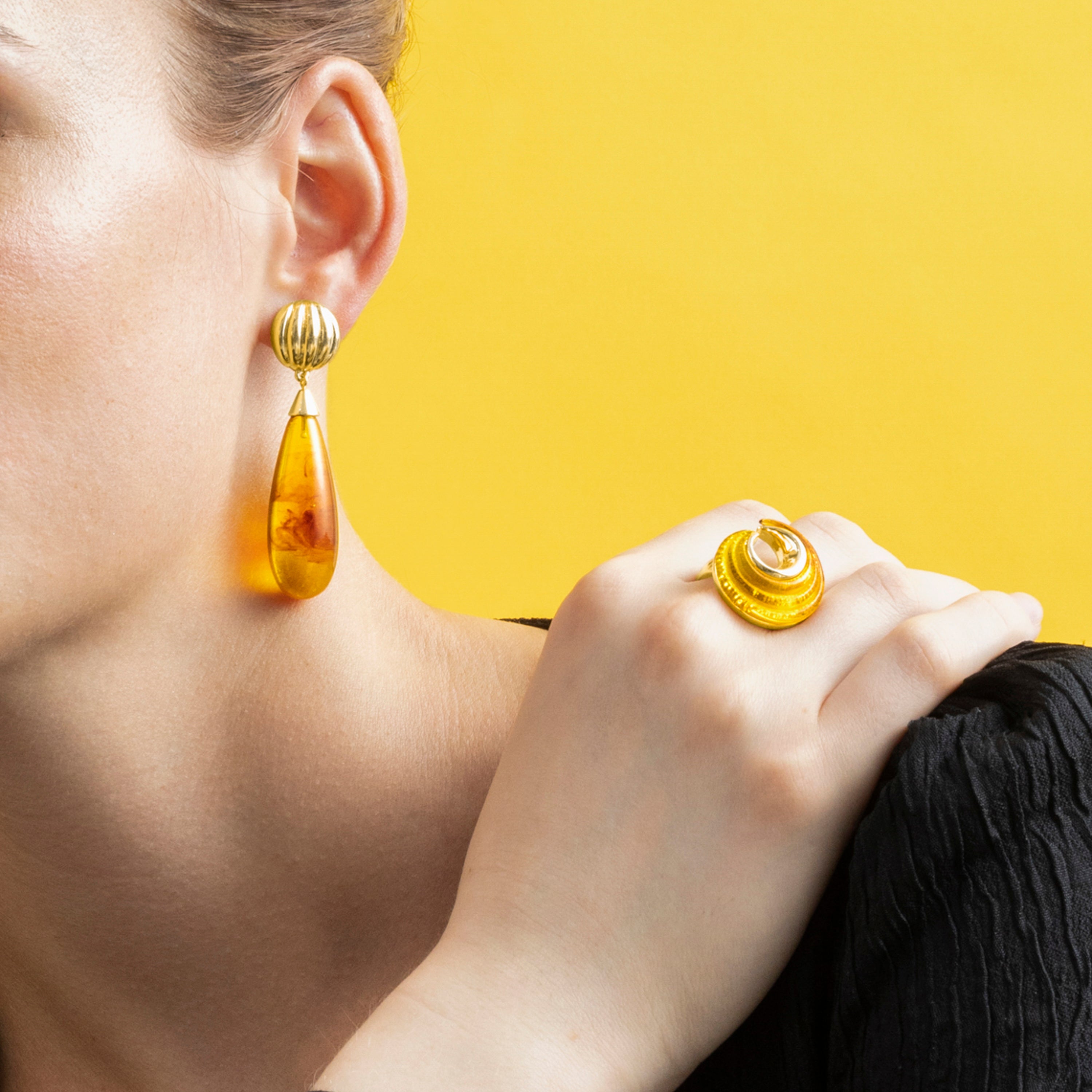 Anillo Overnya con Resina Ambar acabado oro 18k. África se convierte en la línea perfecta para mujeres con personalidad, que no temen arriesgar y lucir piezas con carácter propio.