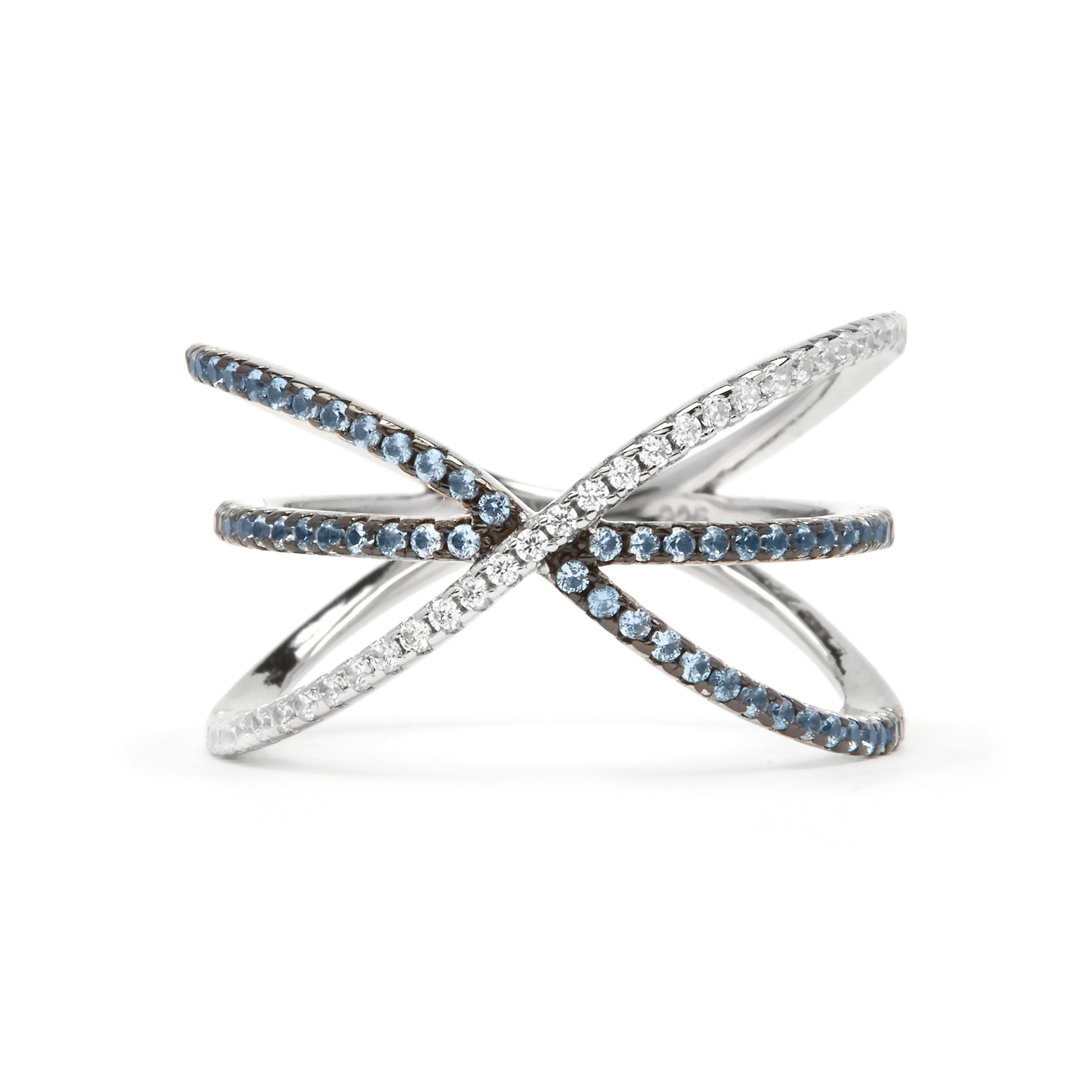 Anillo Yahel de Plata de Ley 925 y Circonita Topacio Azul acabado en Oro Amarillo 18k