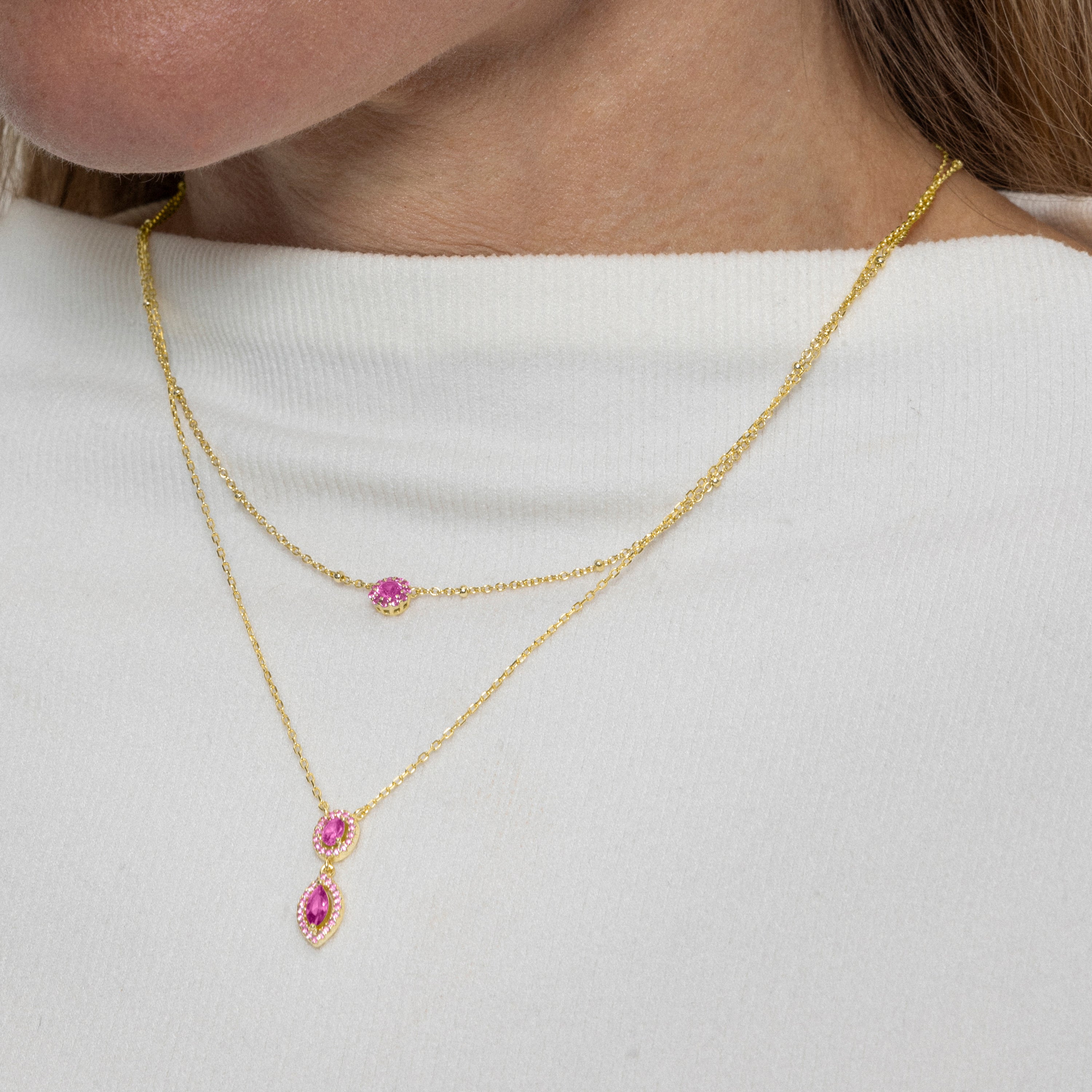 Collar de Plata de Ley 925 y Circonita Rosa acabado en oro amarillo de 18k - Hafai