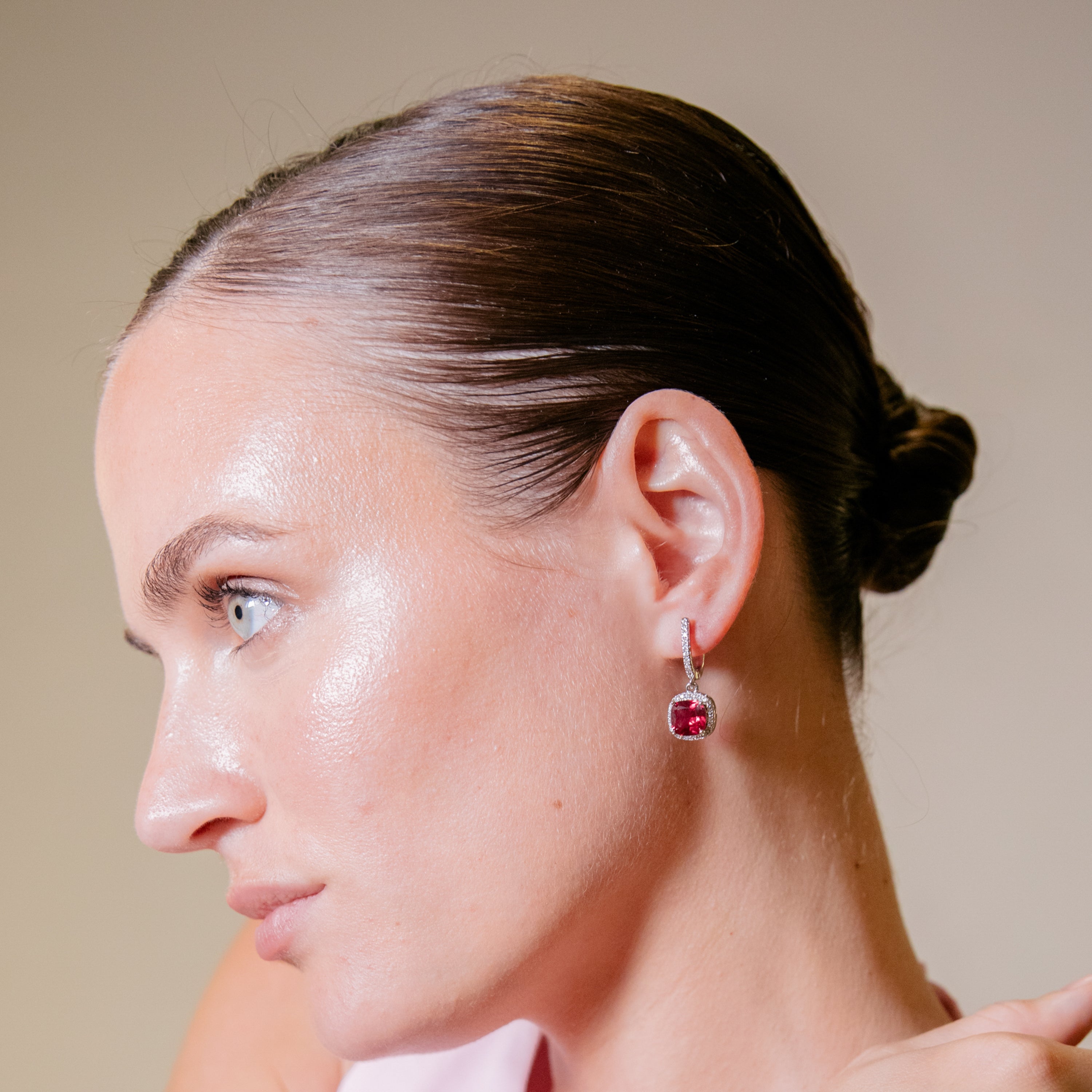 Pendientes Kada de Circonita Rubí acabado en rodio