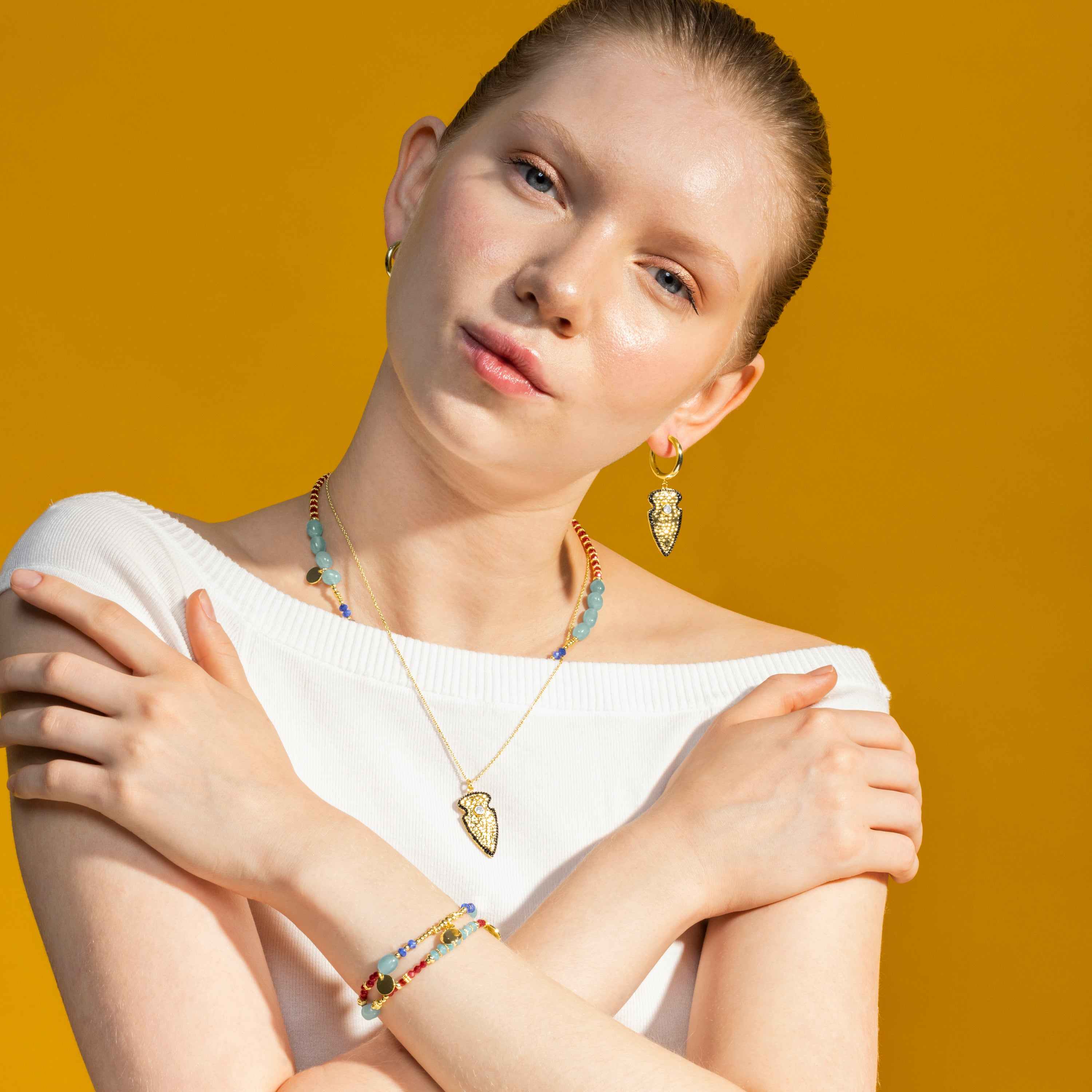 Otla Metallohrstecker mit glänzendem Zirkonia und 18k Goldfinish. Der Boho-Stil ist eine freie Geist-Ästhetik, die verschiedene Kulturen und künstlerische Ausdrucksformen in einem eklektischen Stil mit Schwerpunkt auf organischen Elementen und der Natur verbindet.