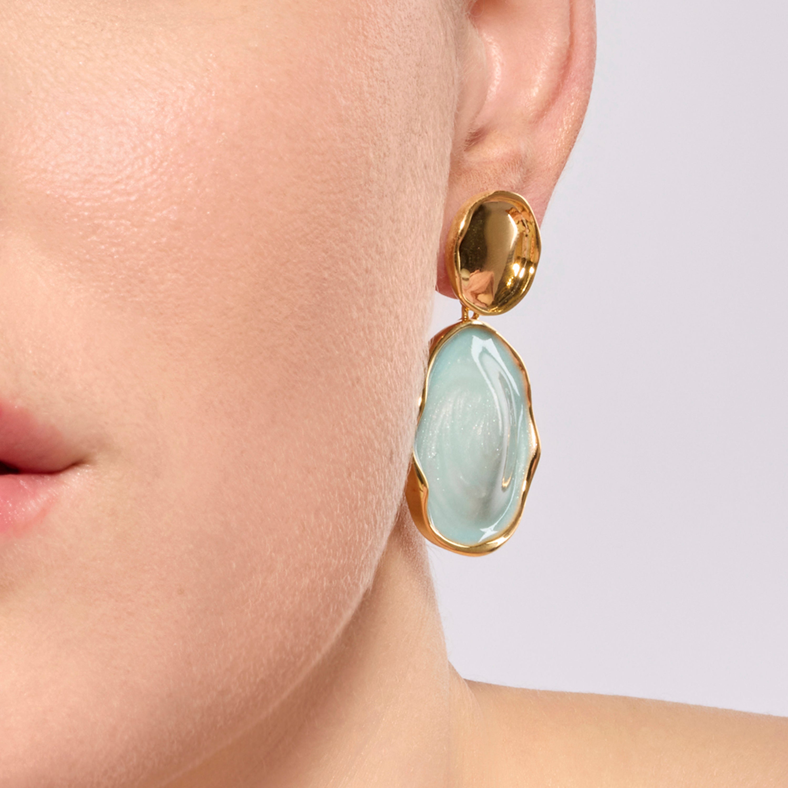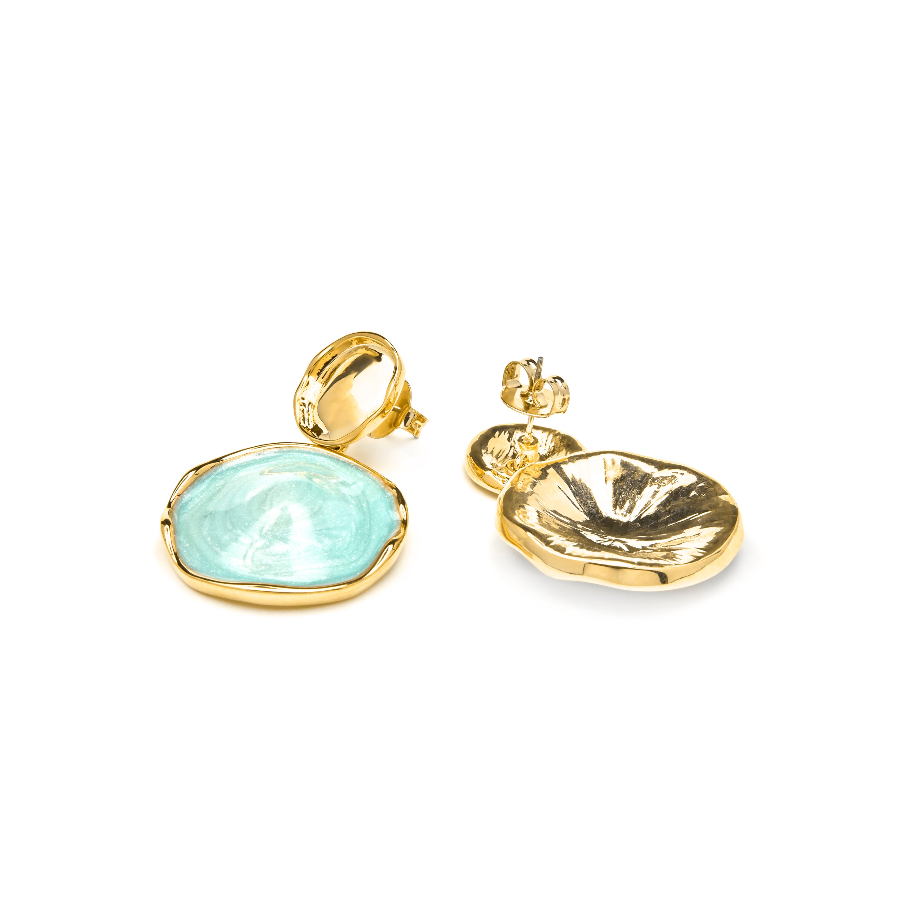 Pendientes acabado oro amarillo de 18k y Lacado Azul - Talorzi