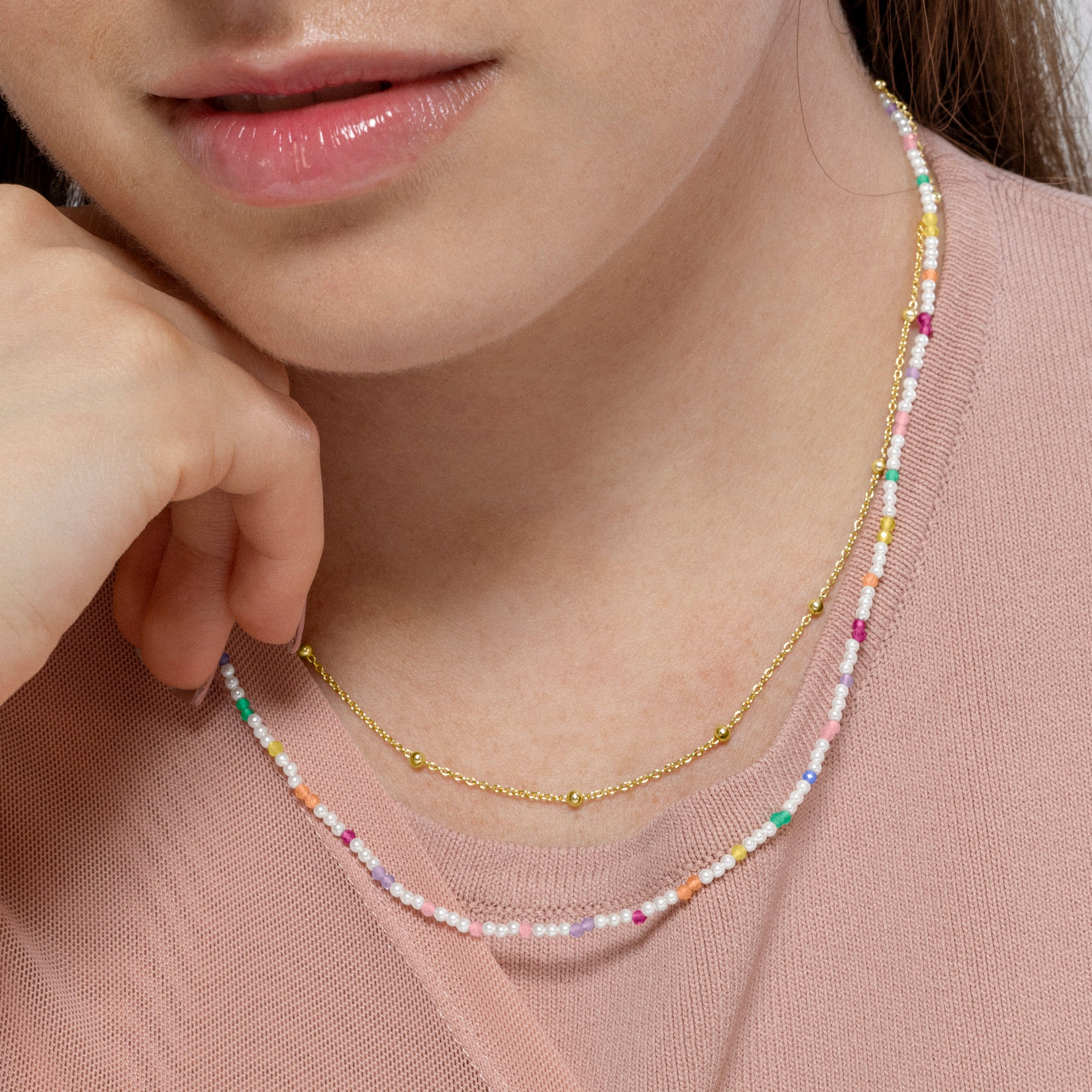 Collar Deriz de Plata de Ley 925 y Perla Blanca acabado en oro amarillo de 18k. Pide un deseo se caracteriza por diseños de carácter joven, repletos de significado y color, originales a la vez que discretos, que pretenden convertirse en pequeños amuletos.