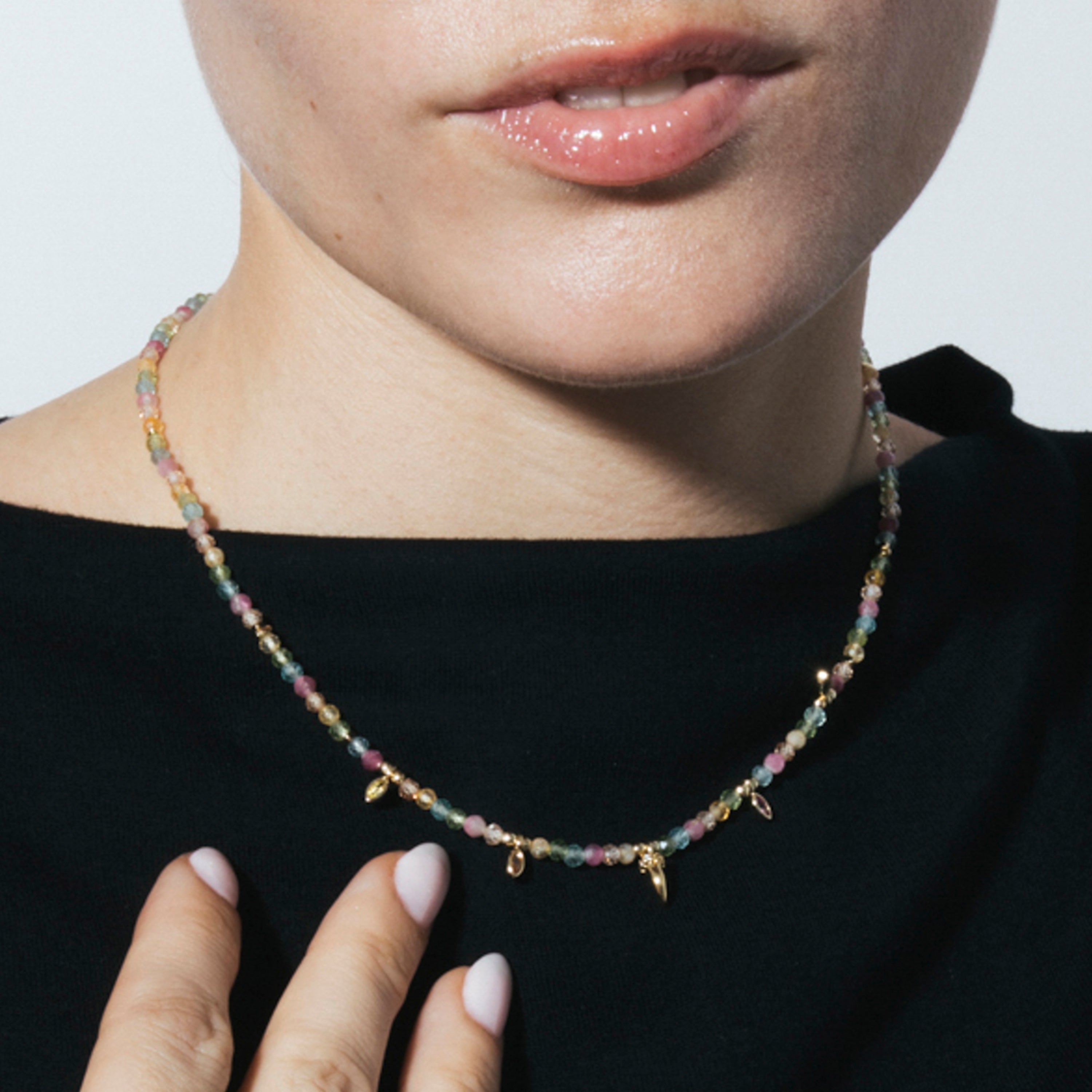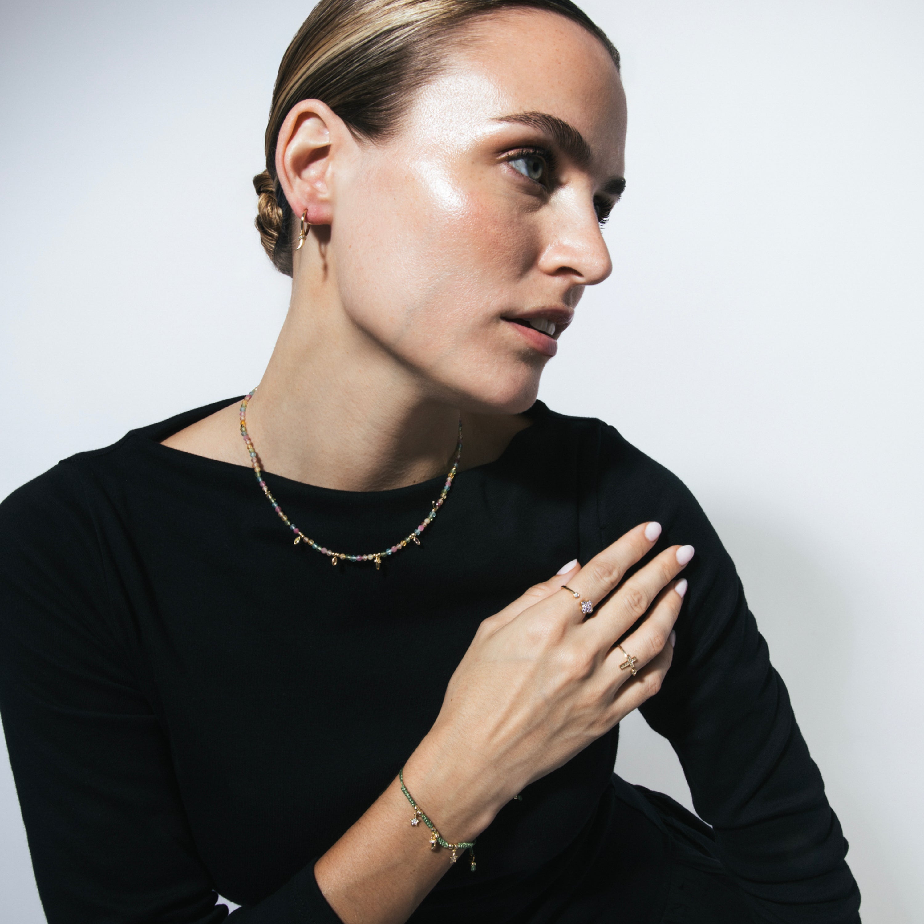 Collar de Plata de Ley 925 y Circonita Multicolor acabado en oro amarillo 18k - Esli