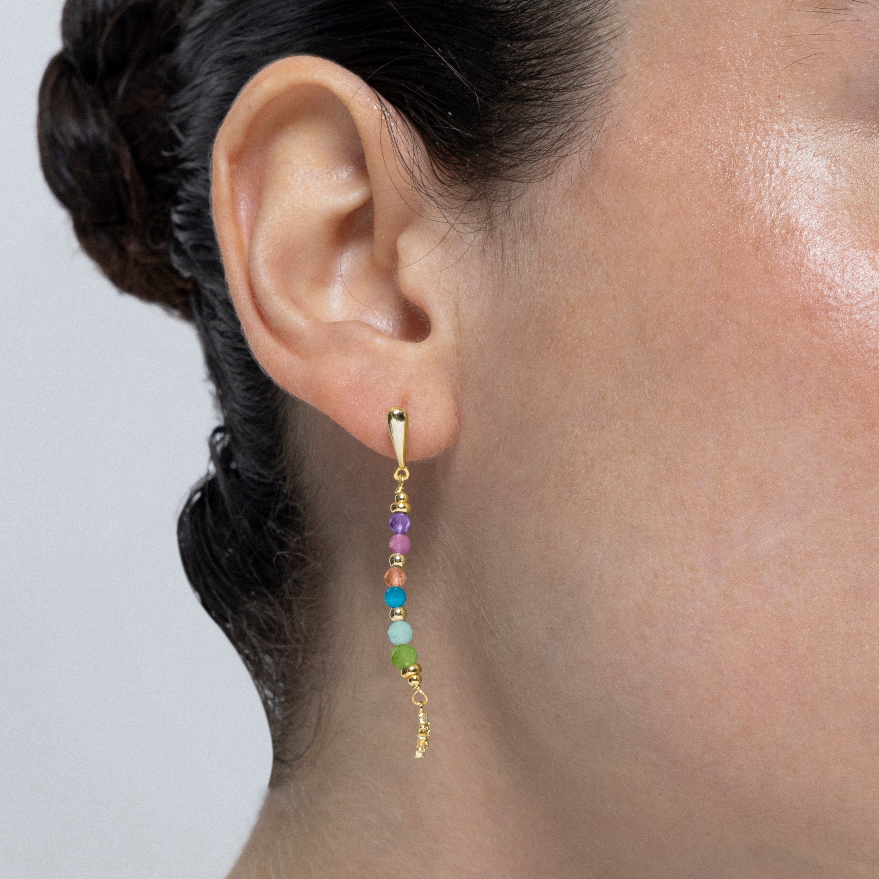 Pendientes Estrella de Plata de Ley 925 y Cristal Multicolor acabados en oro amarillo de 18k. Pide un deseo se caracteriza por diseños de carácter joven, repletos de significado y color, originales a la vez que discretos, que pretenden convertirse en pequeños amuletos.