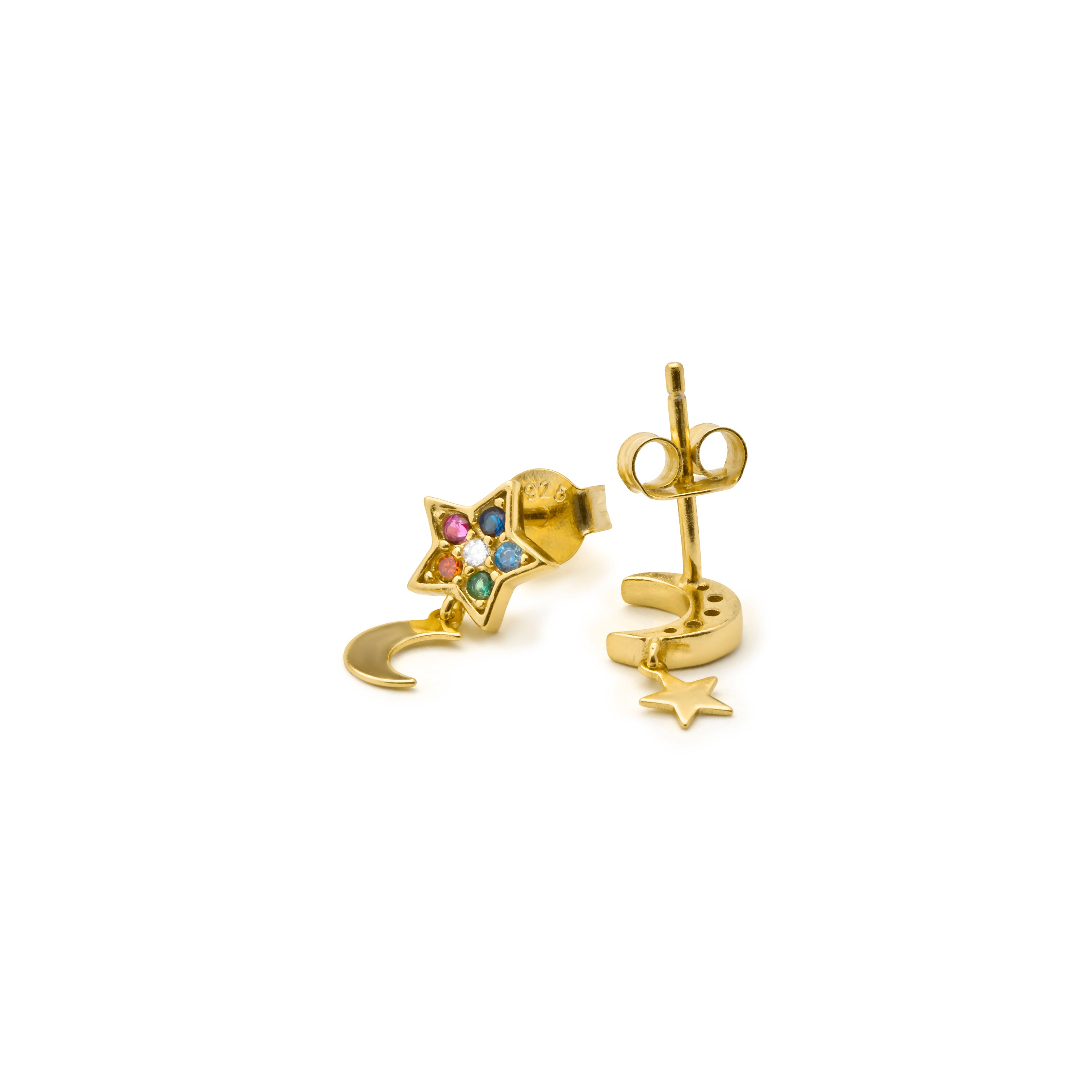Pendientes de Plata de Ley 925 y Circonita Multicolor acabado en oro amarillo 18k - Linca