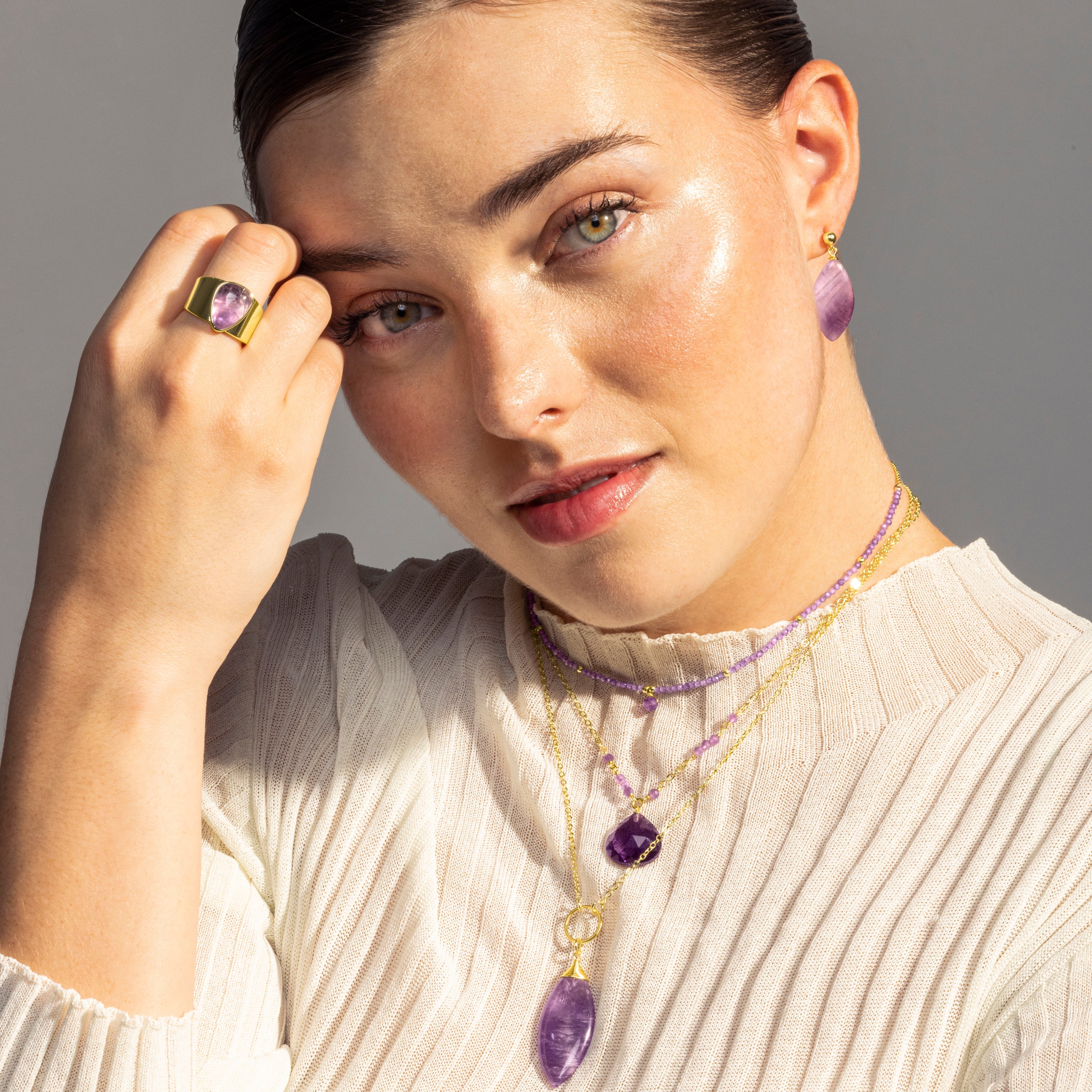 Natürlicher Amethystring mit 18K Gelbgold-Finish - Sheak