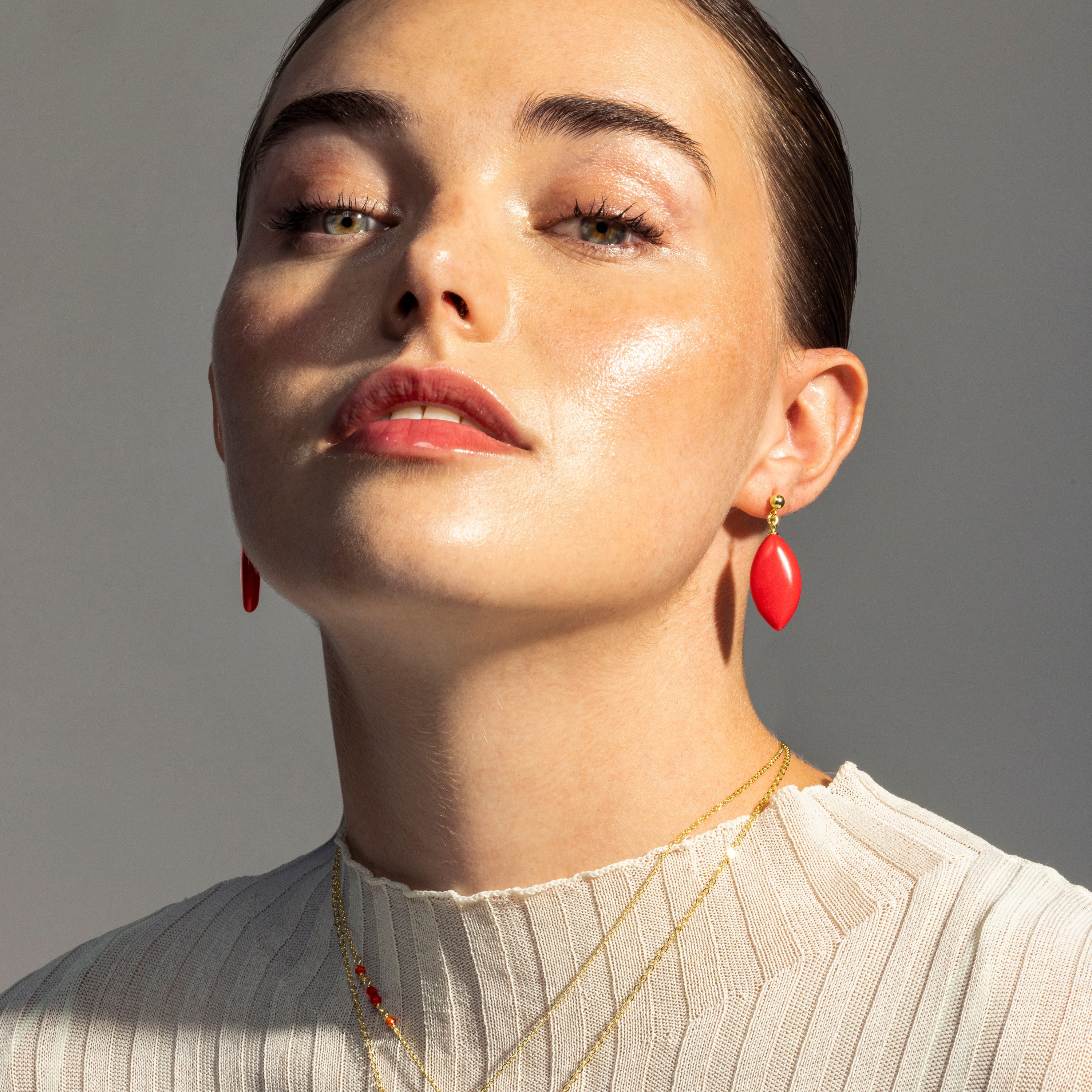 925er Silberohrringe mit Koralle, vergoldet mit 18K Gelbgold - Ayom