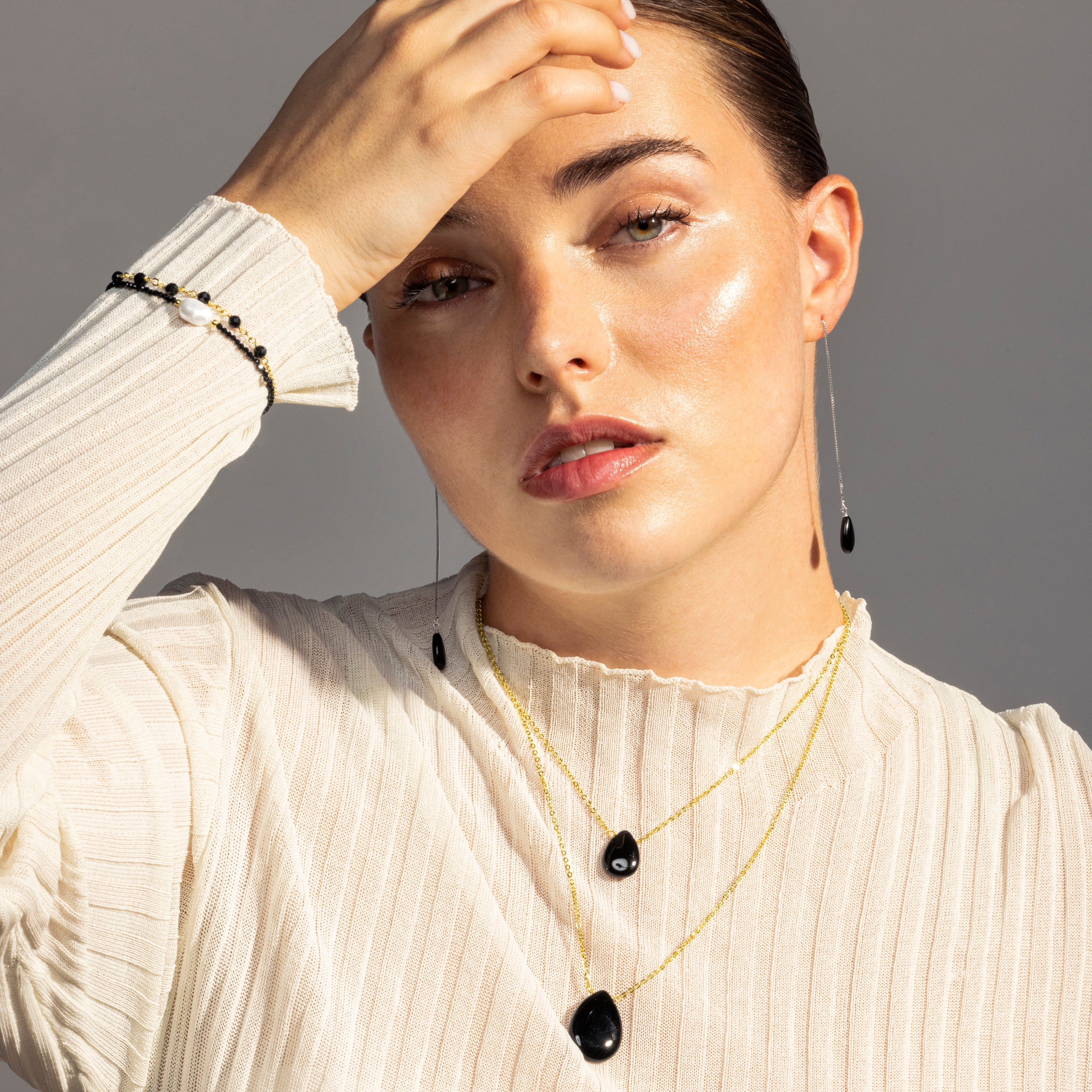 Echtsilber 925 Ohrringe mit Onyx, rhodiniert - Zoqoyi