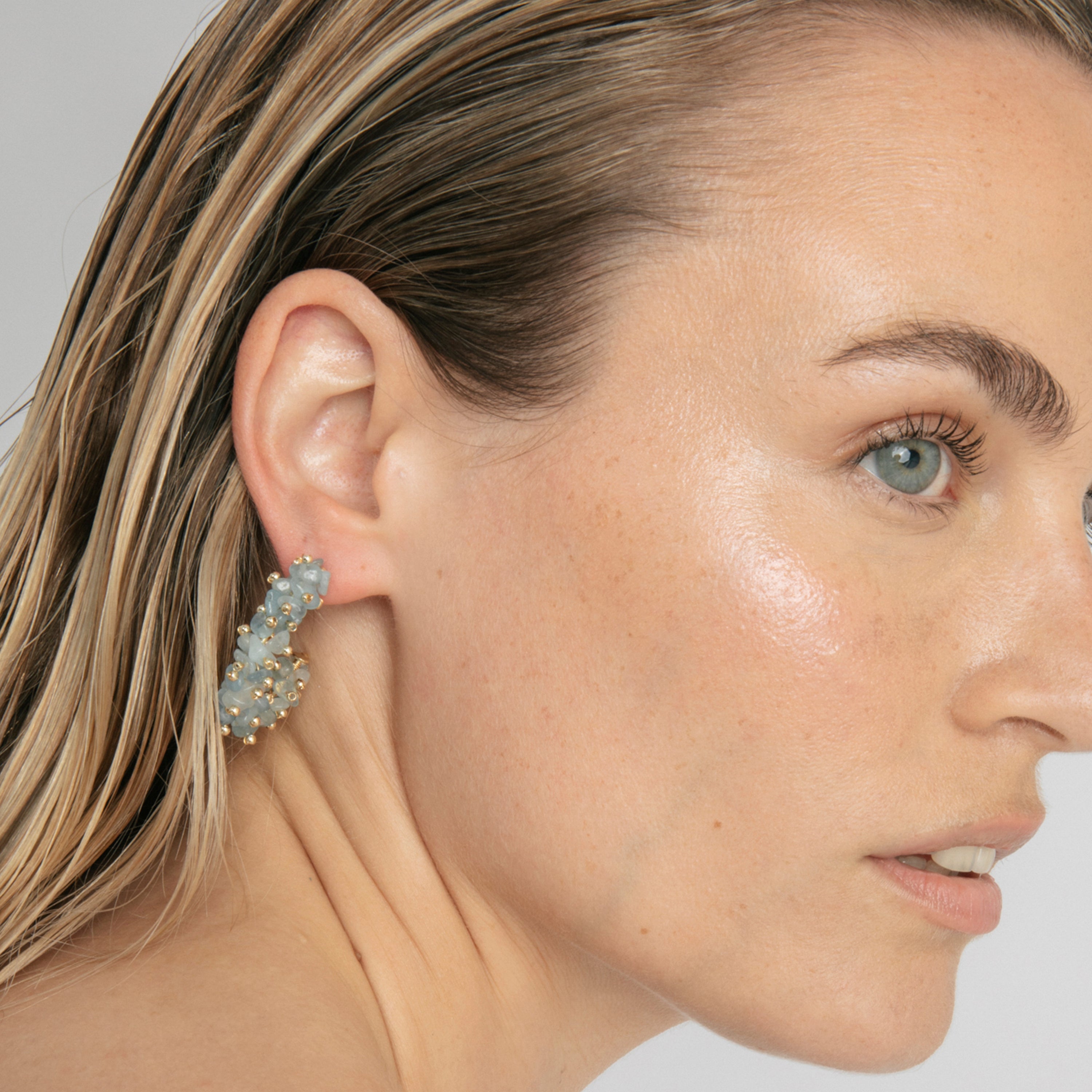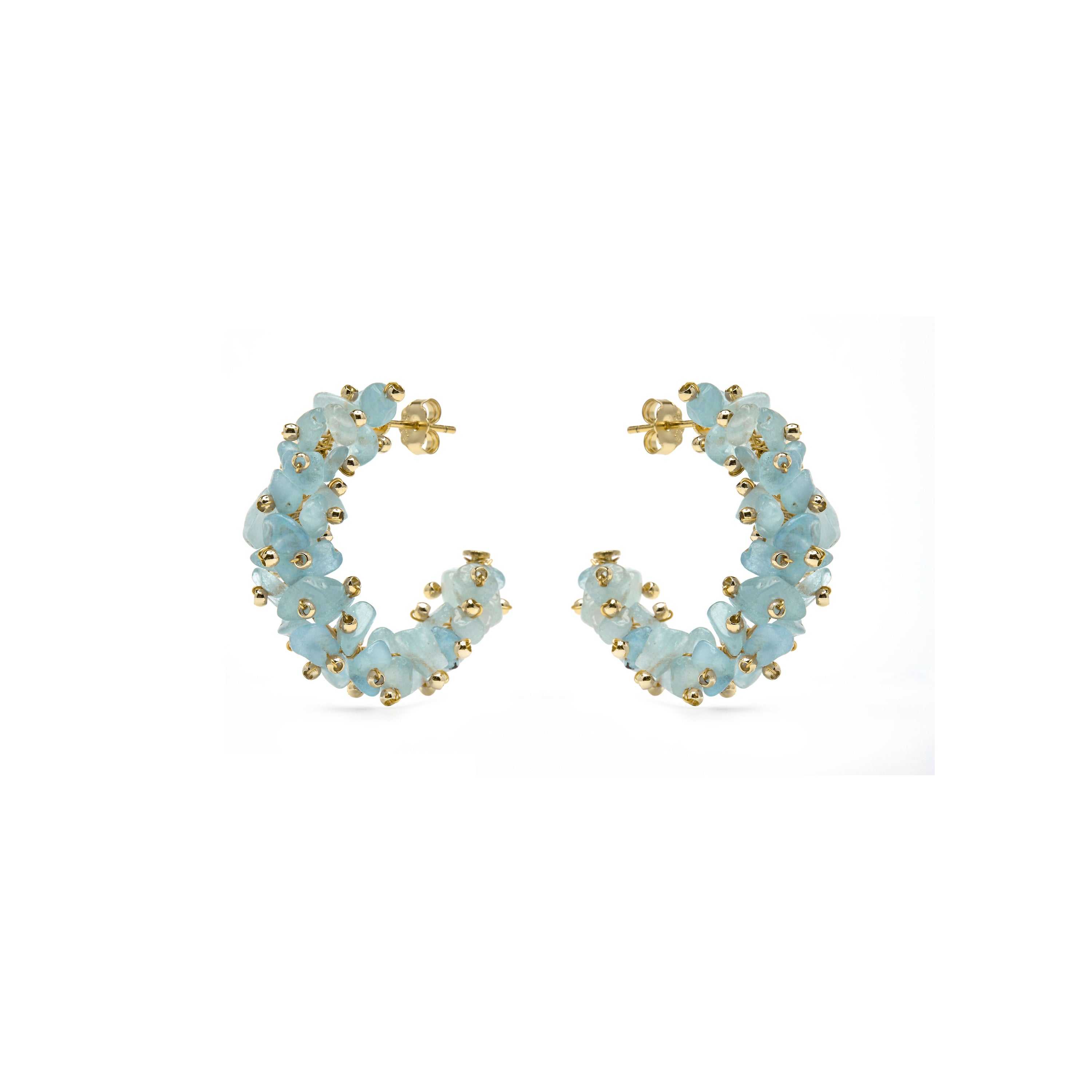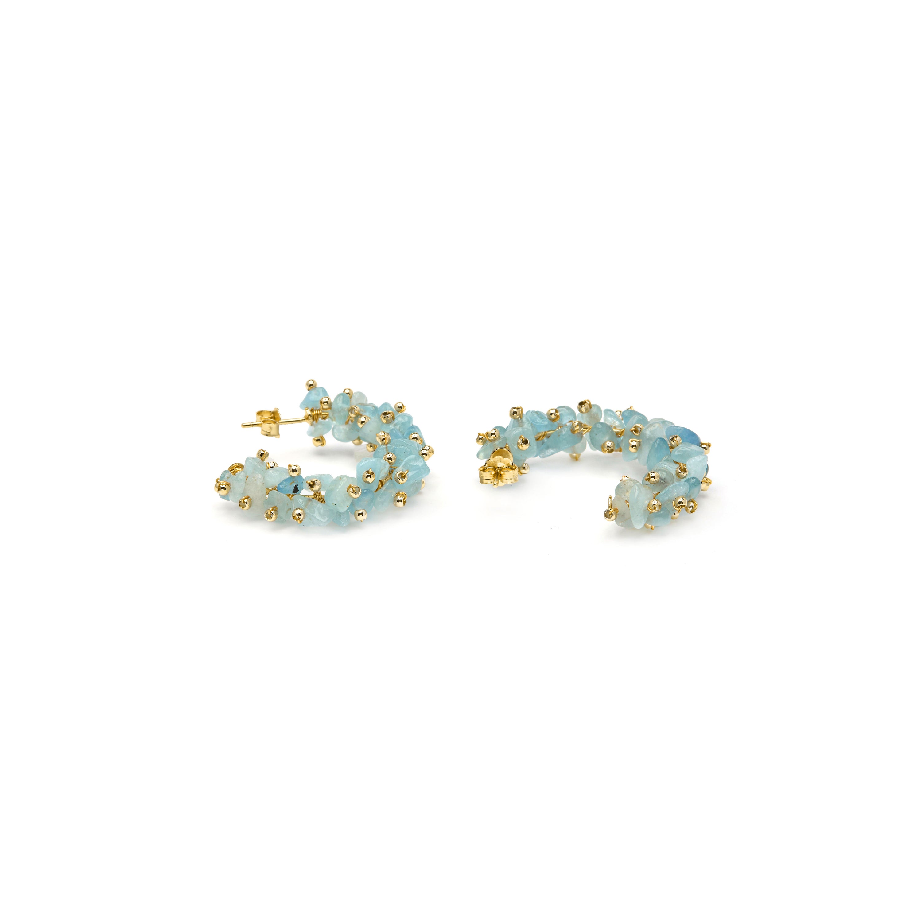 Pendientes Isem de Plata de Ley 925 y Jade Azul acabado en Oro Amarillo 18k