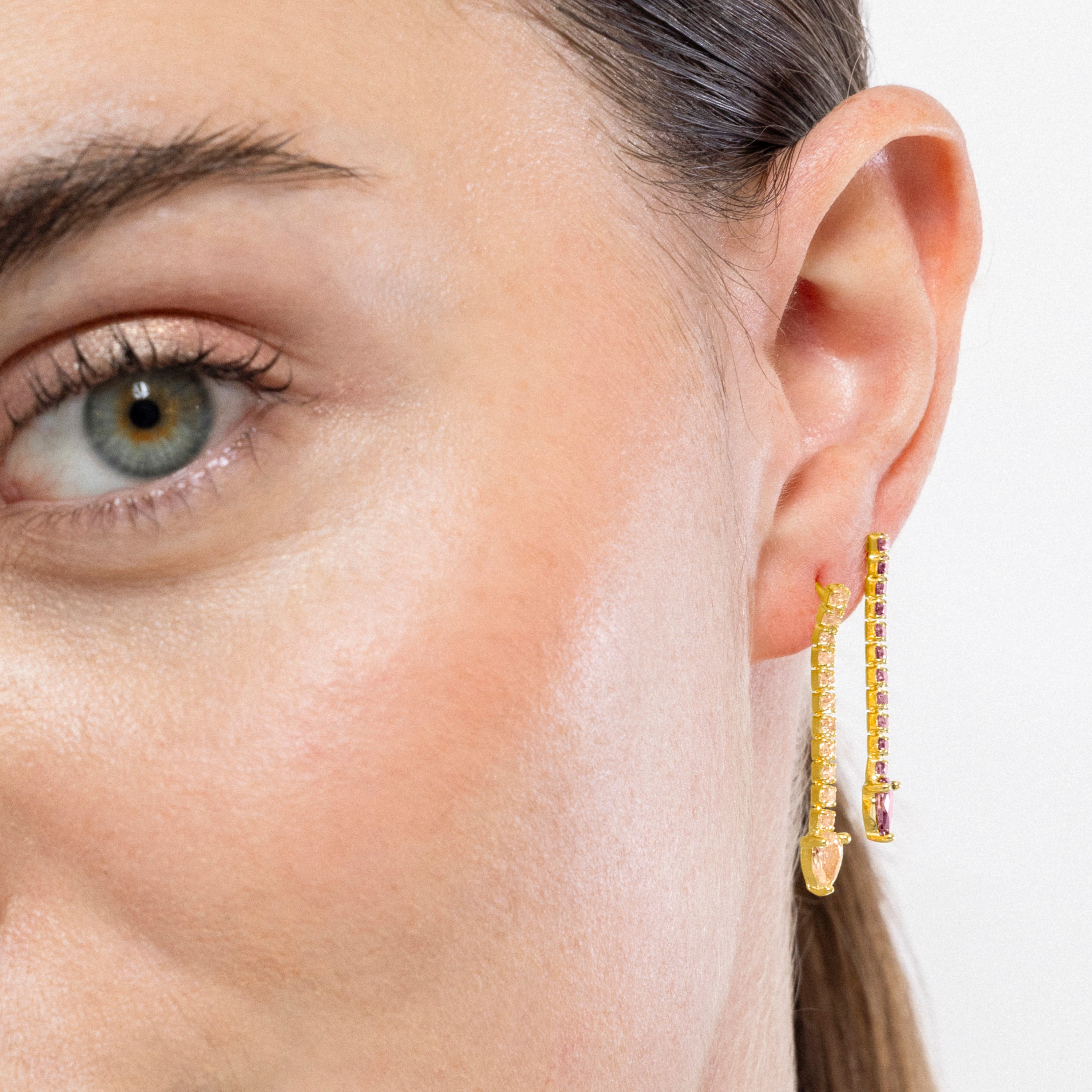 Pendientes de Plata de Ley 925 y Circonita Champagne acabados en oro amarillo de 18k - Uri