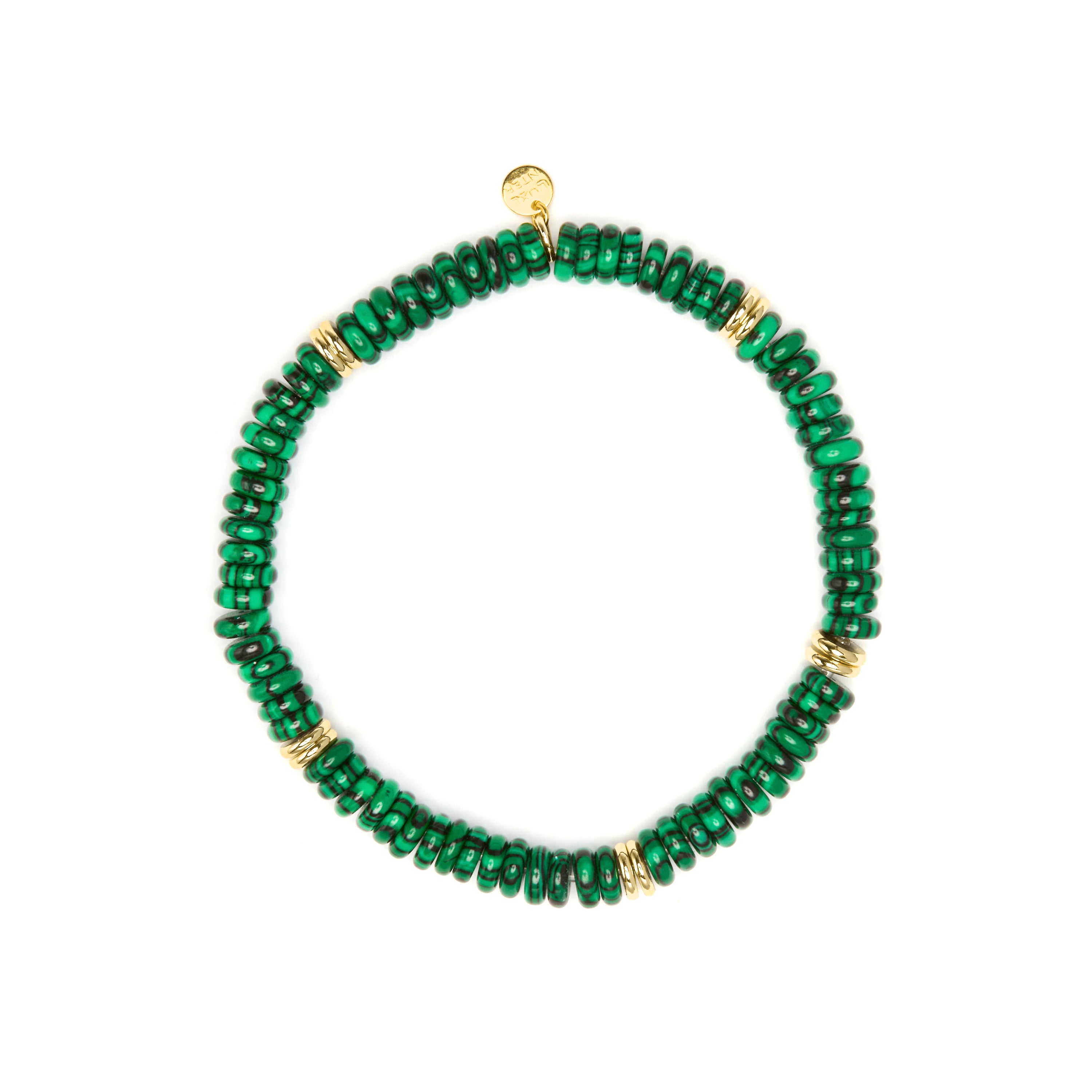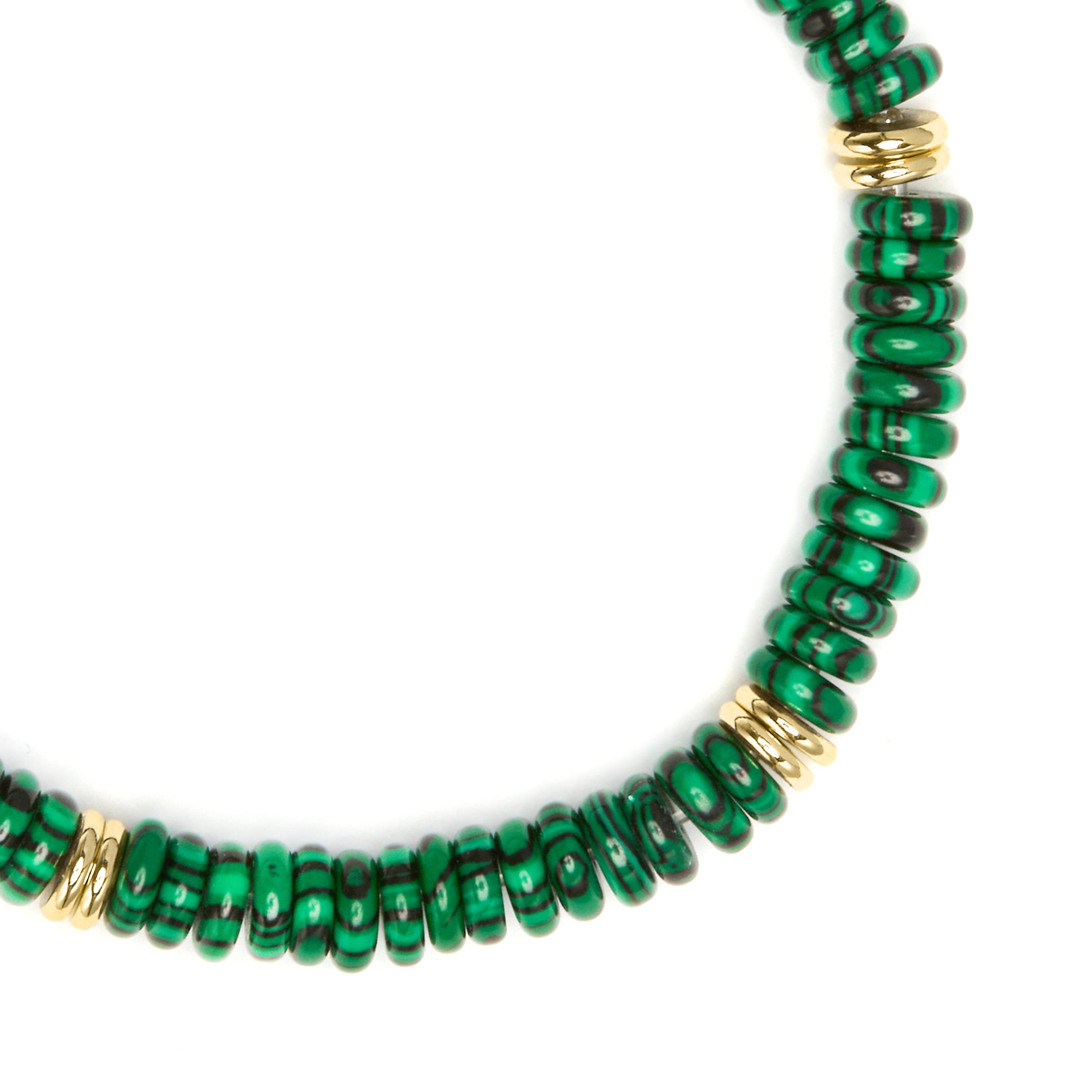 Pulsera de Plata de Ley 925 y Malaquita acabado en oro amarillo 18k - Monsuc
