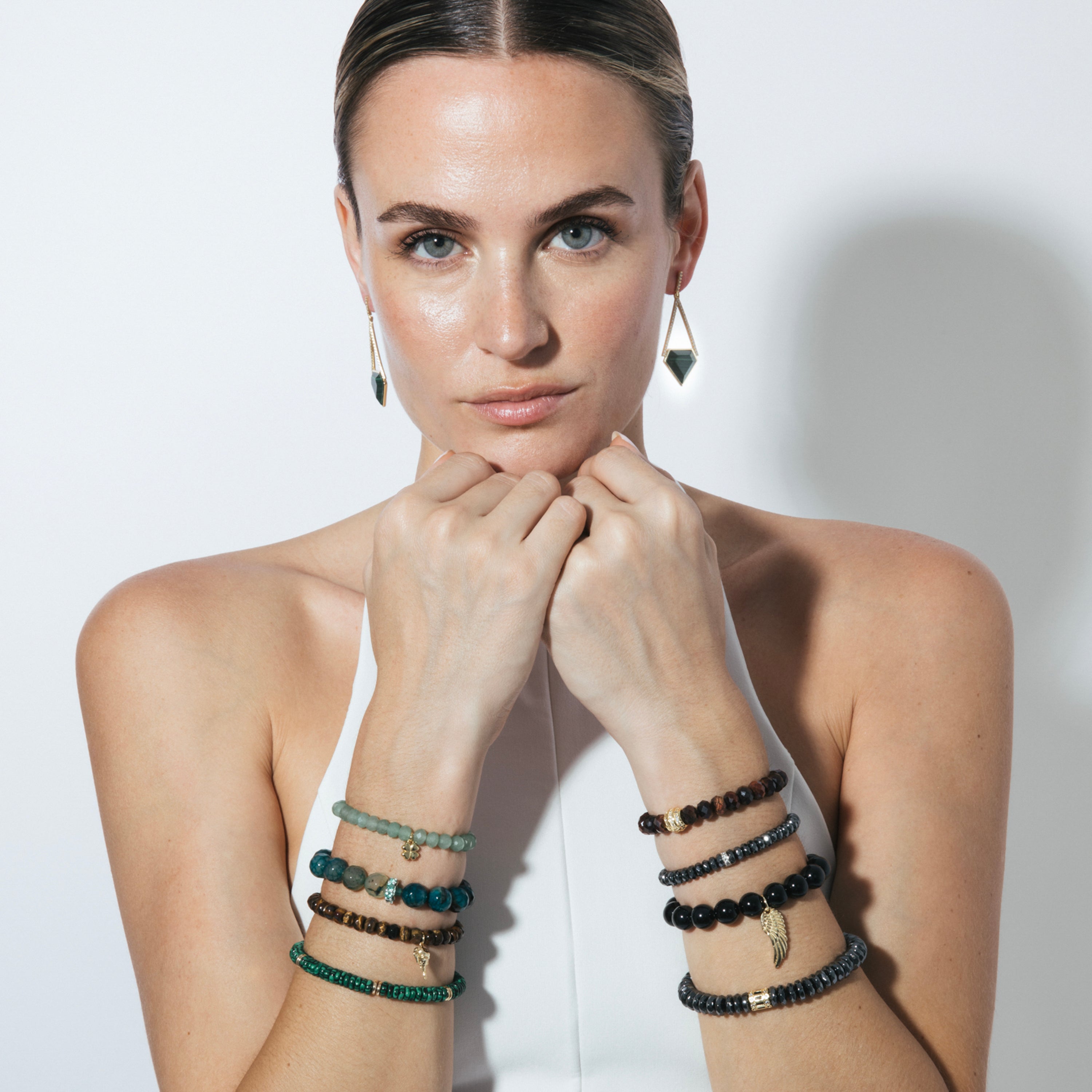 Pulsera Monsuc de Plata de Ley 925 y Malaquita acabado en Oro Amarillo 18k