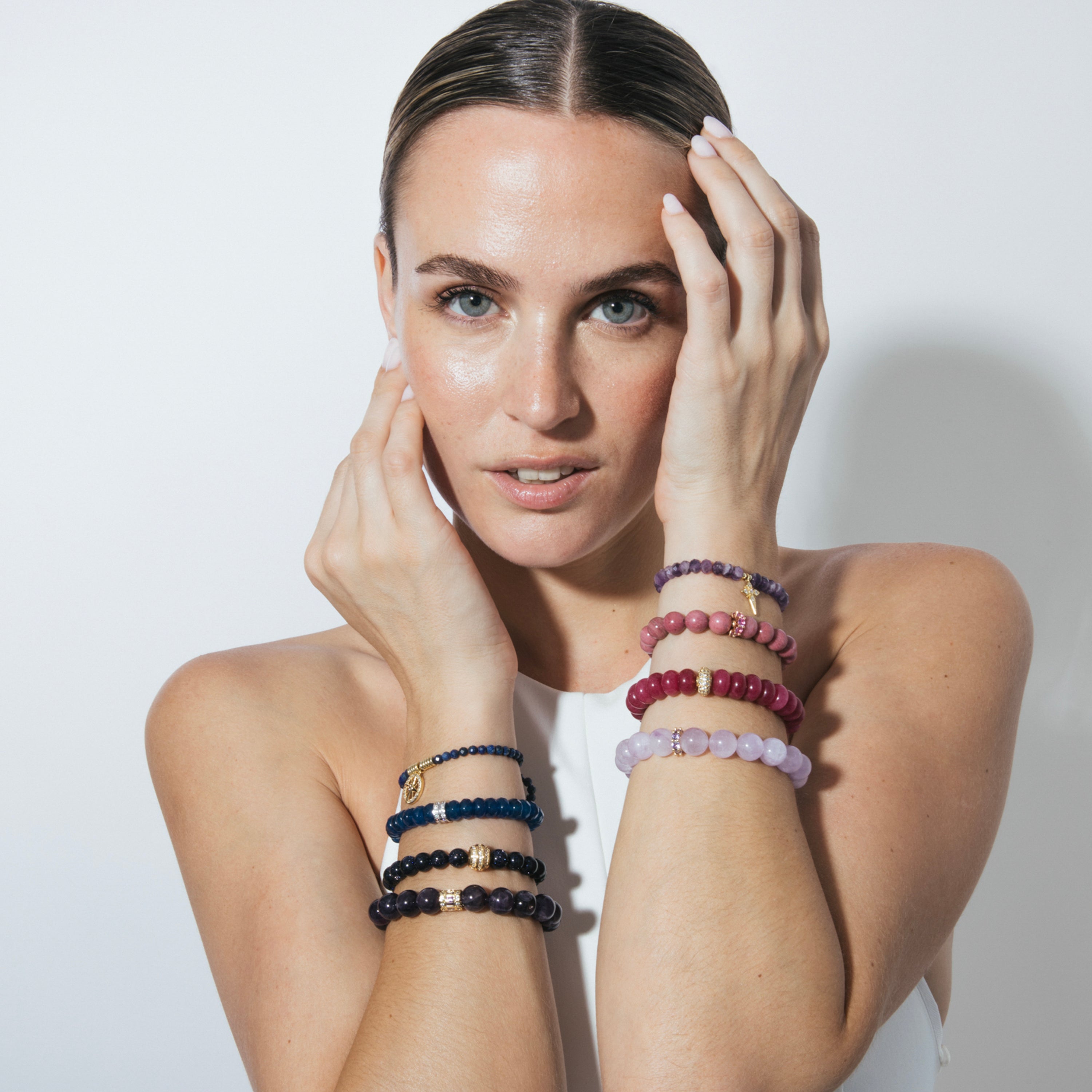 Pulsera de Plata de Ley 925 y Jade Rojo acabado en oro amarillo 18k - Ziafa