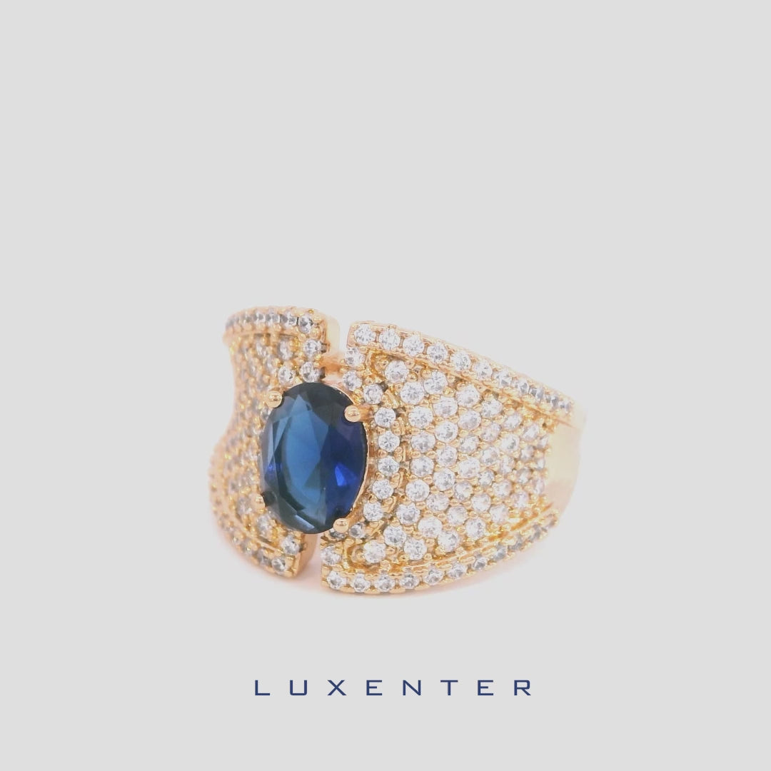 Ring mit Zirkonia-Saphir, 18k Gold-Finish - Kiawe
