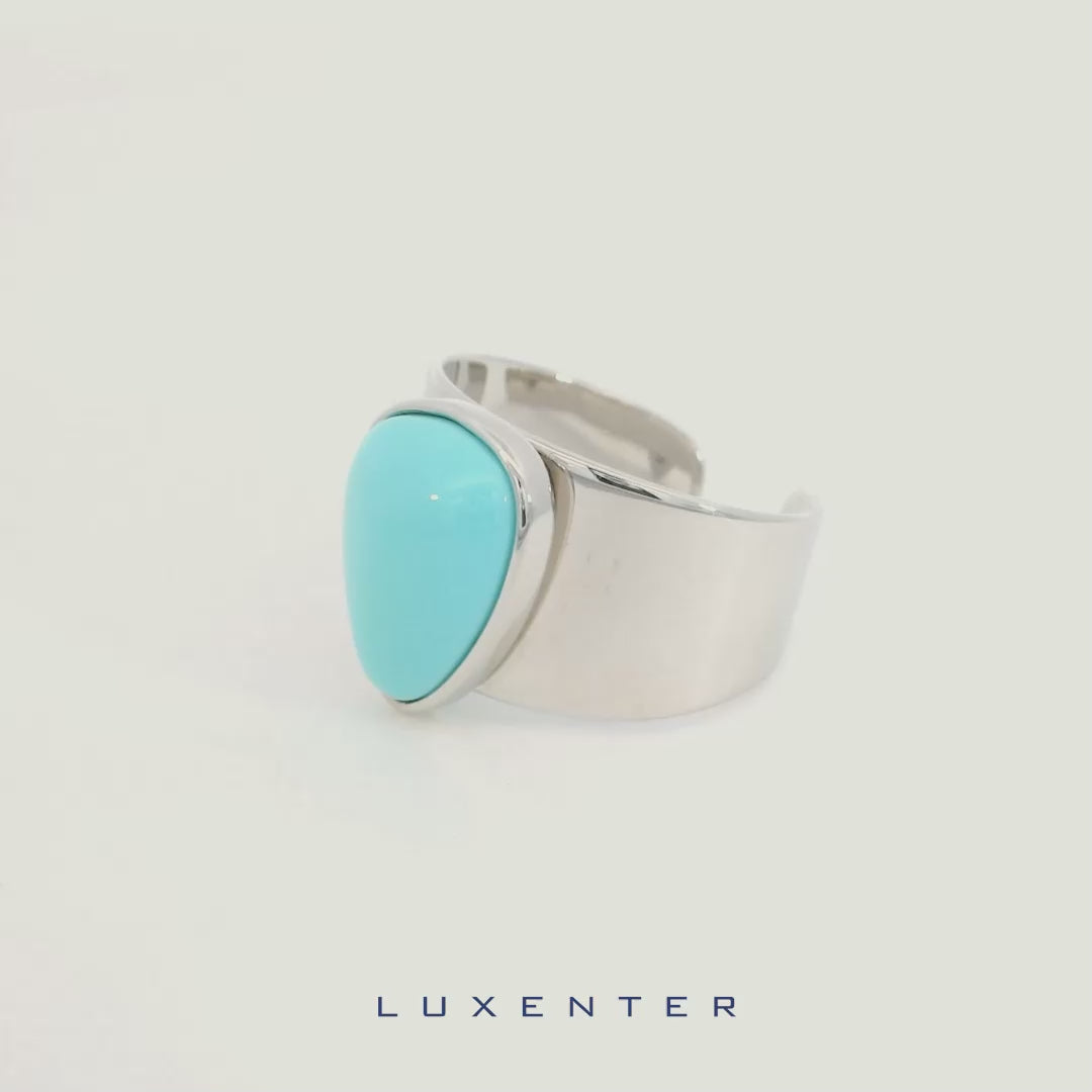 Blauer Achat-Ring mit Rhodium-Finish - Sheak