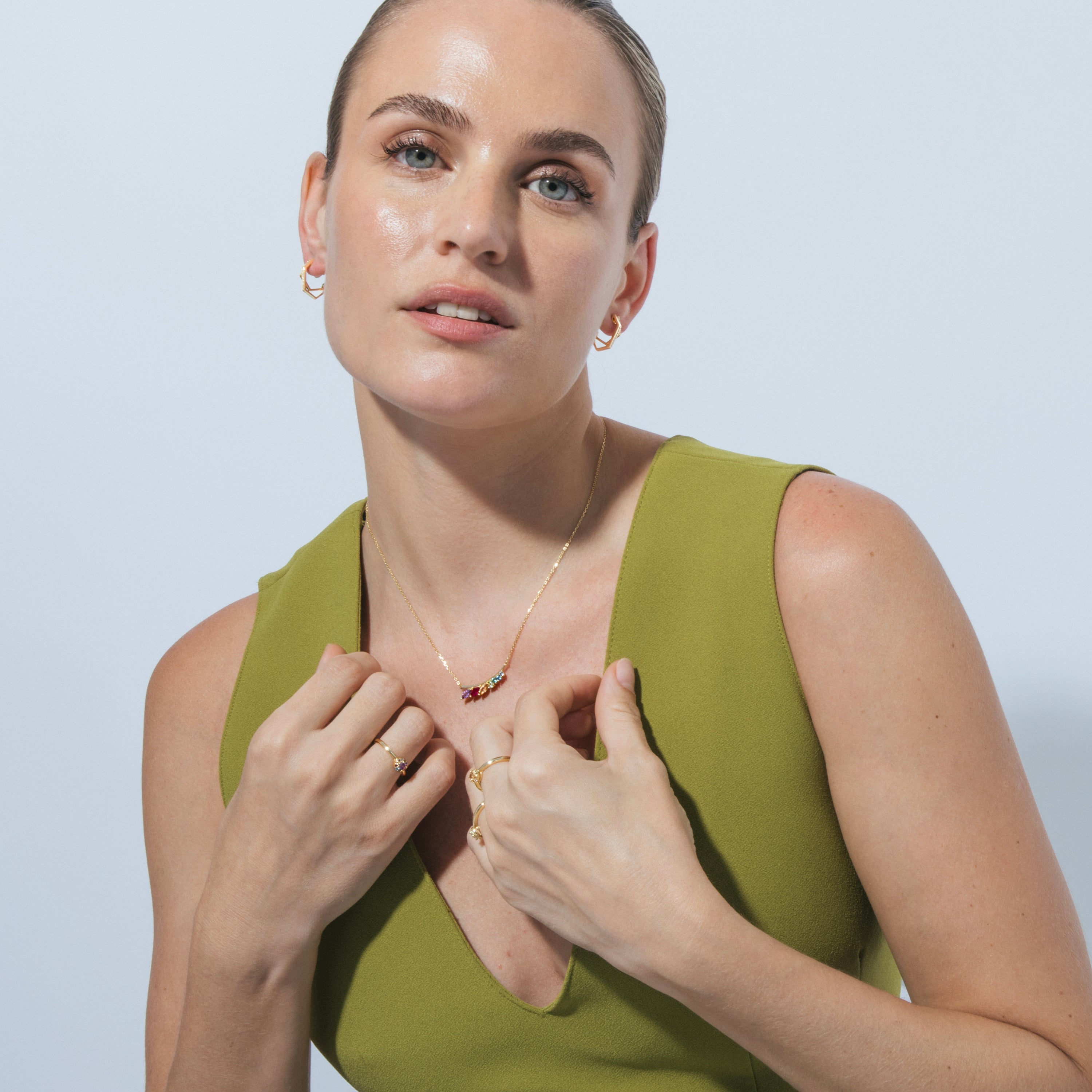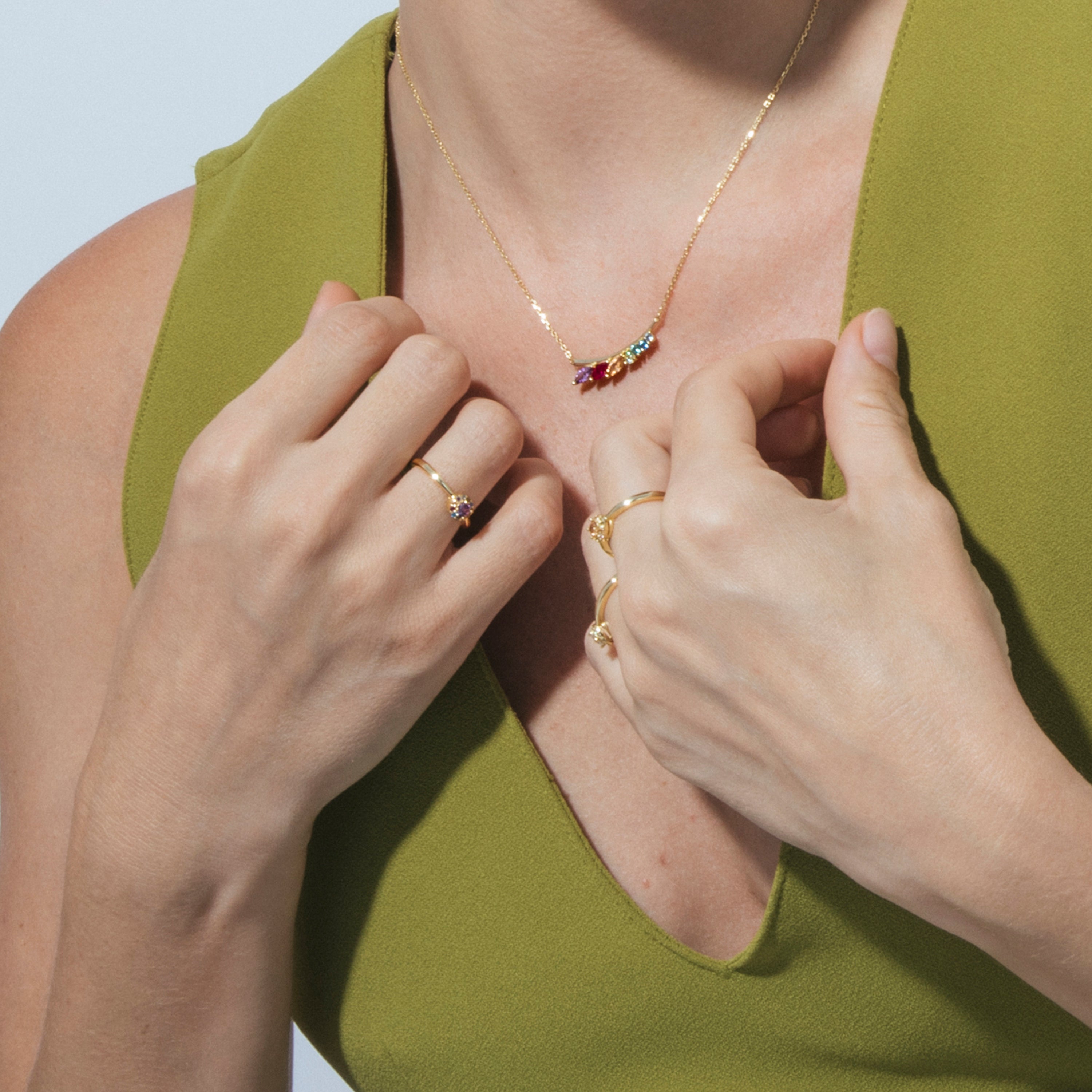 Anillo Aldra de Plata de Ley 925 y Circonita Multicolor acabado en Oro Amarillo 18k
