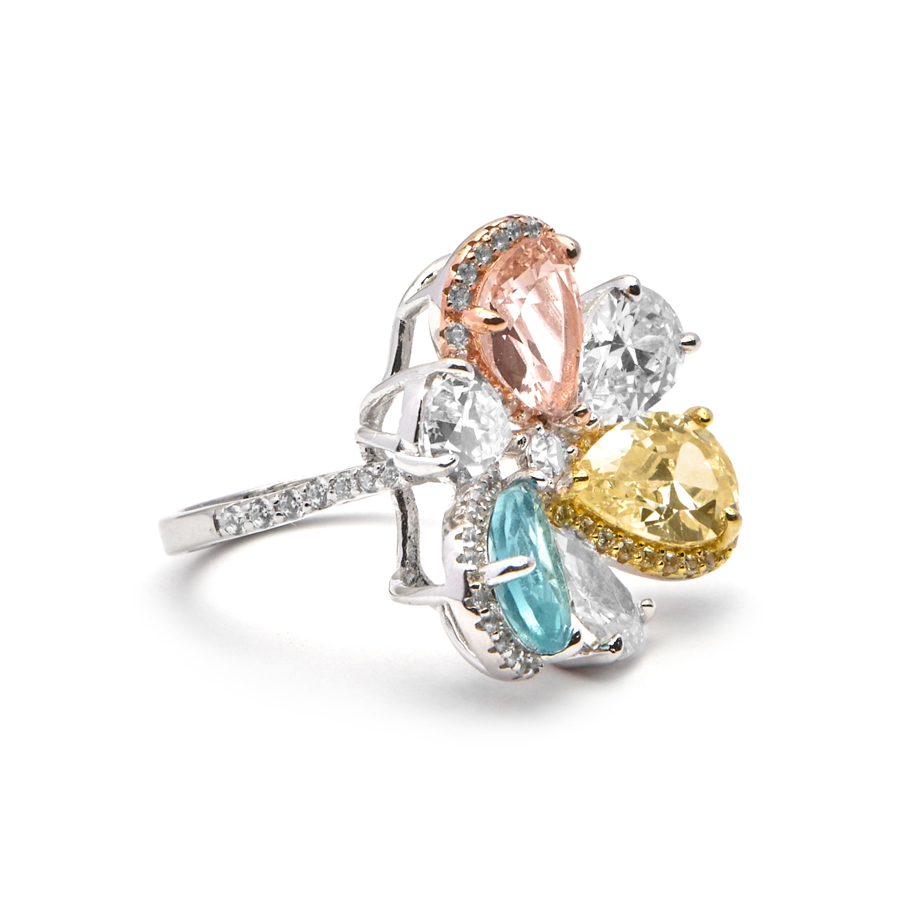 Anillo de Plata de Ley 925 y Circonita Multicolor acabado en rodio - Gowe