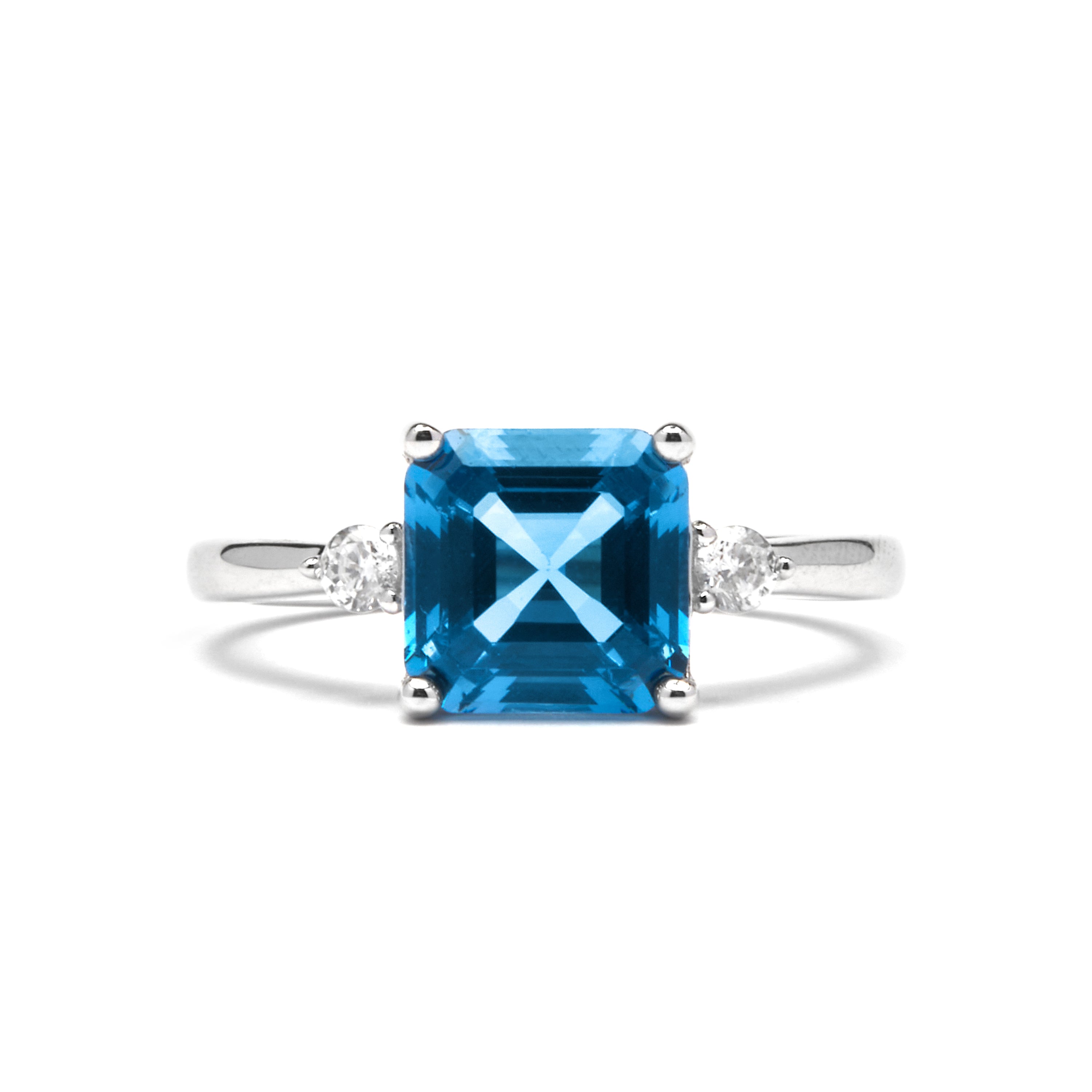 Anillo de Plata de Ley 925 y Circonita Aguamarina acabado rodio - Himith
