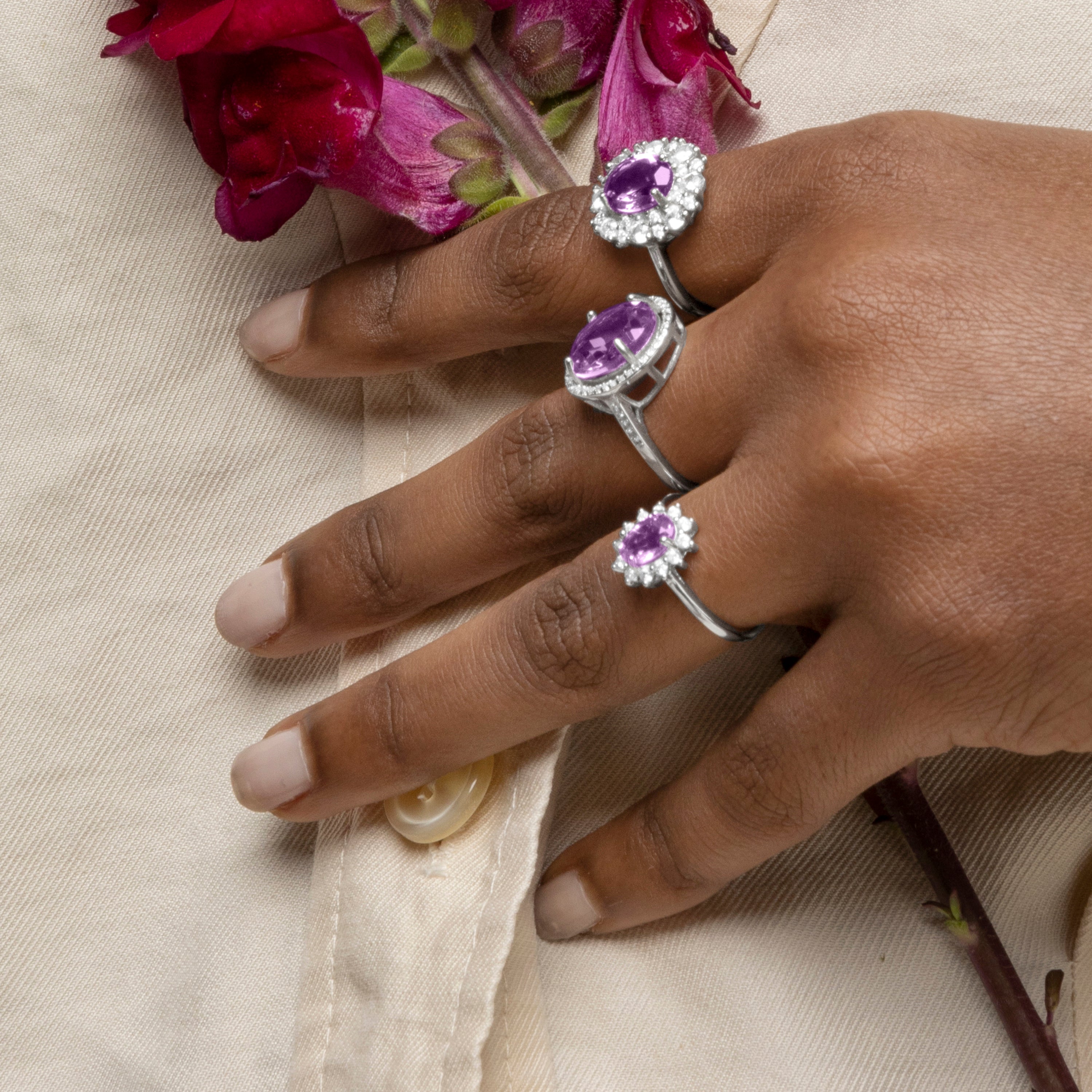 Anillo de Plata de Ley 925 con Amatista Natural acabado en rodio - Lirian