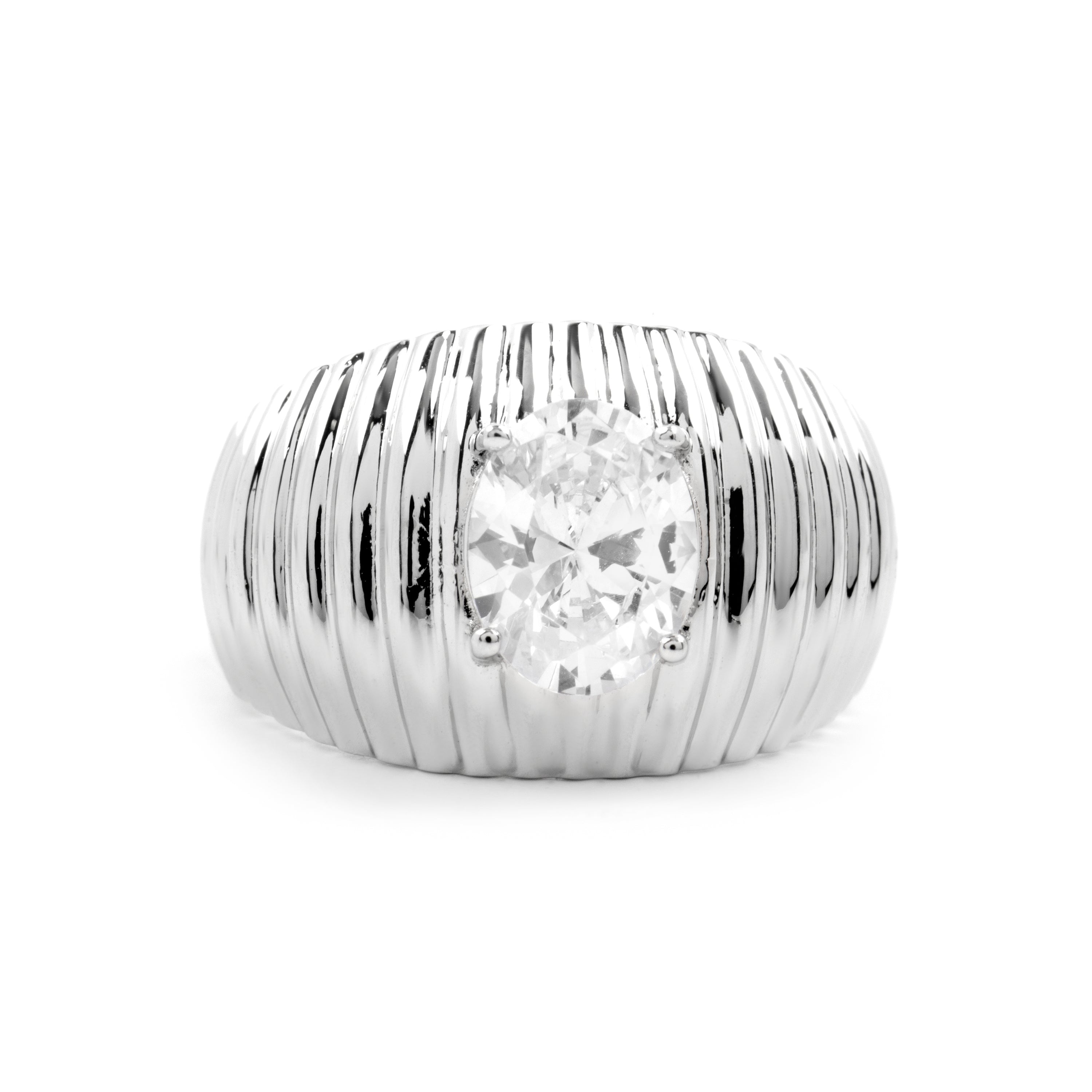 925er Sterlingsilberring mit funkelndem Zirkonia und Rhodium-Finish - Metri