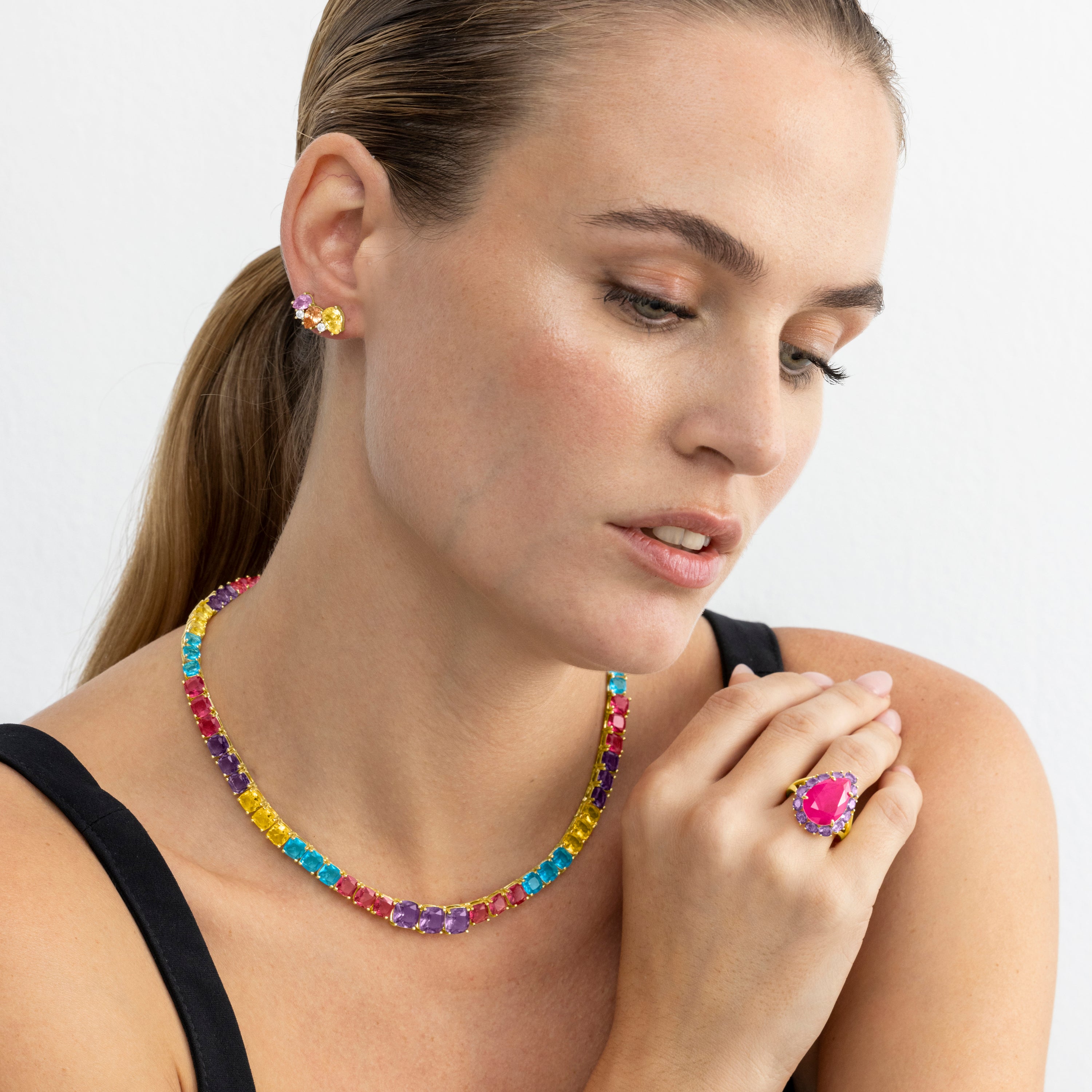 Anillo Soreus de Plata de Ley 925 y Cuarzo Hidrotermal Multicolor acabado en oro amarillo de 18k. Atelier transmite tendencia en cada joya, con diseños que se han ido adaptando a la evolución de la moda y de la mujer. Es la línea perfecta para mujeres únicas que quieren aportar un toque de color a su día a día.