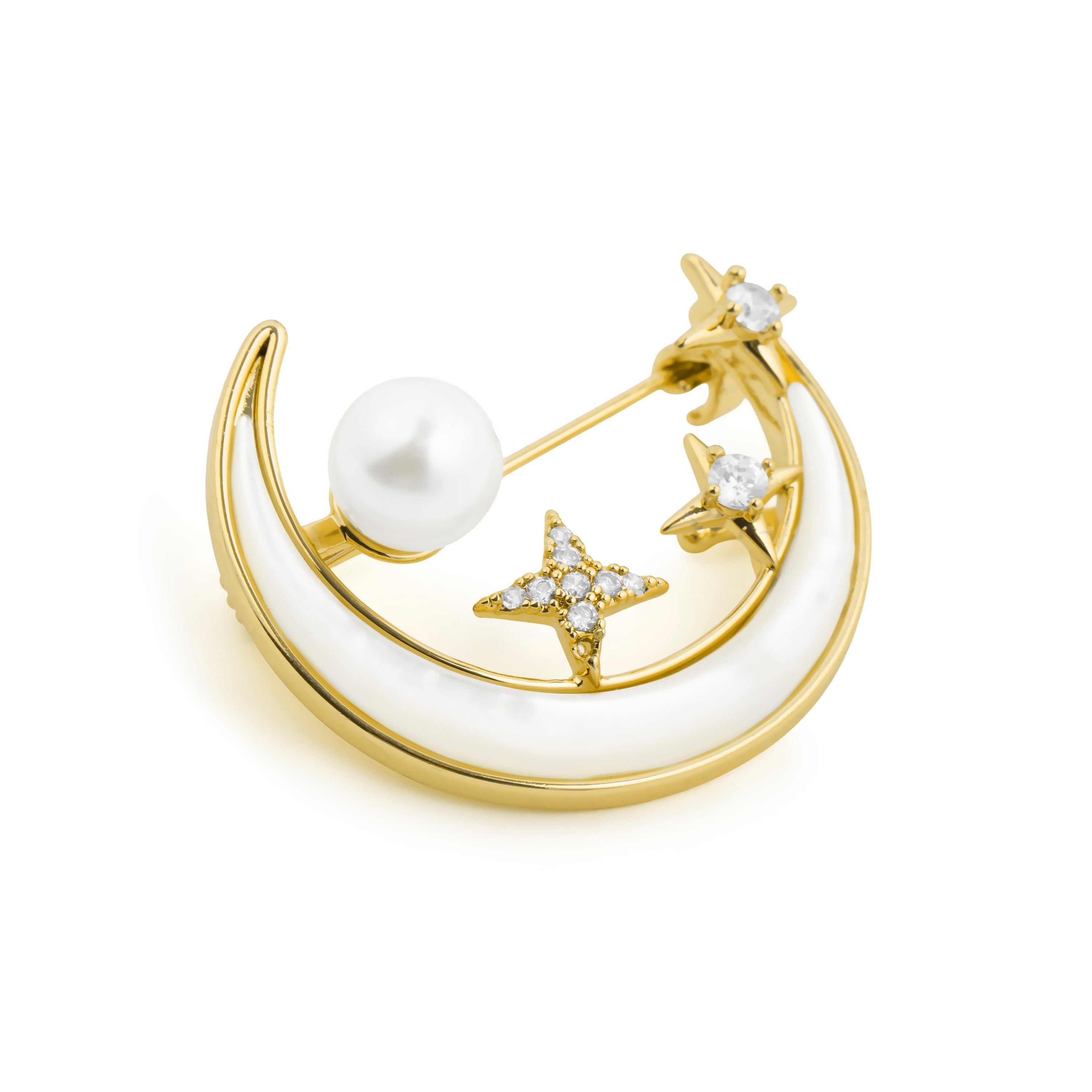 Broche Kume de Madreperla Blanca acabado en Oro Amarillo 18k