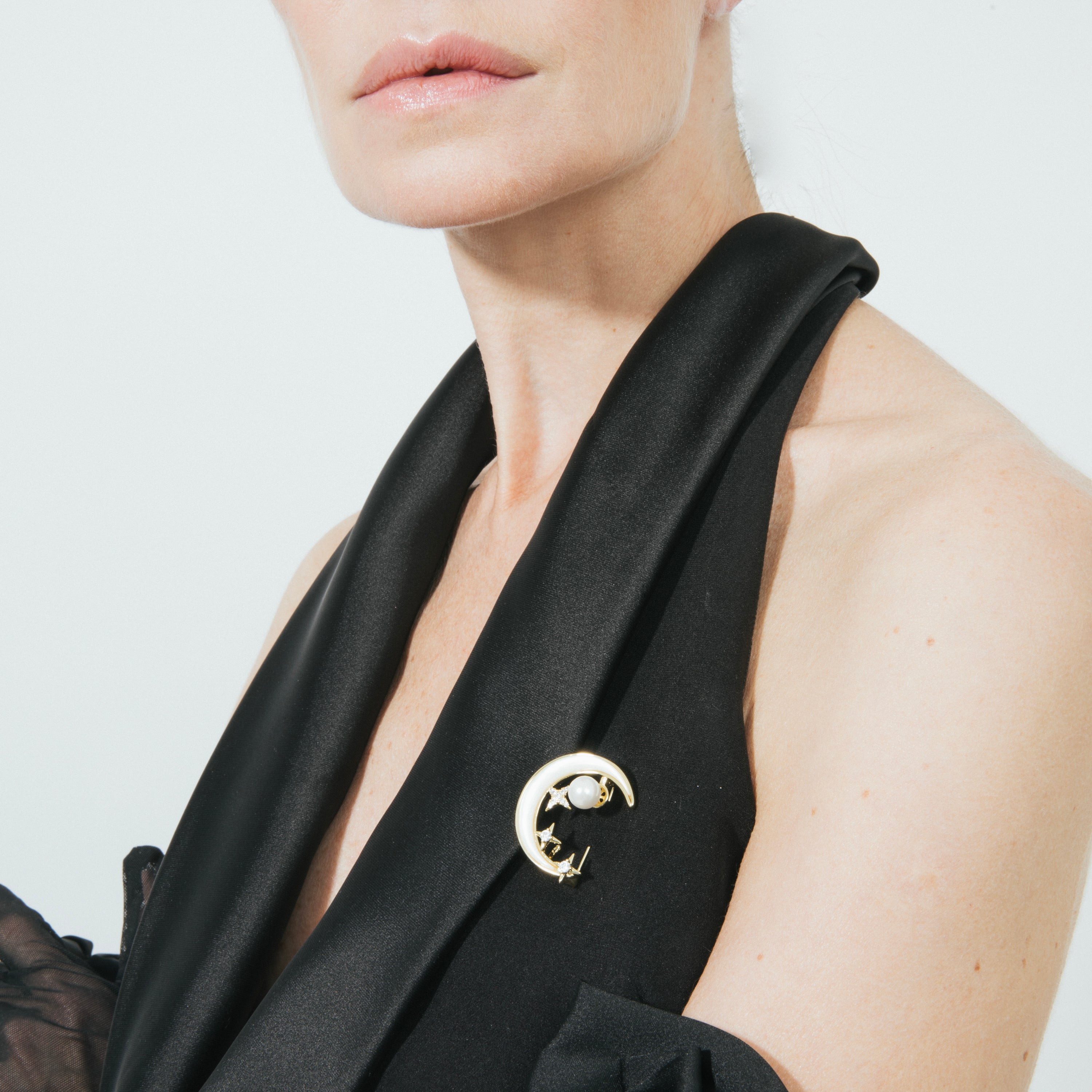 Broche de Madreperla Blanca acabado en oro amarillo 18k - Kume