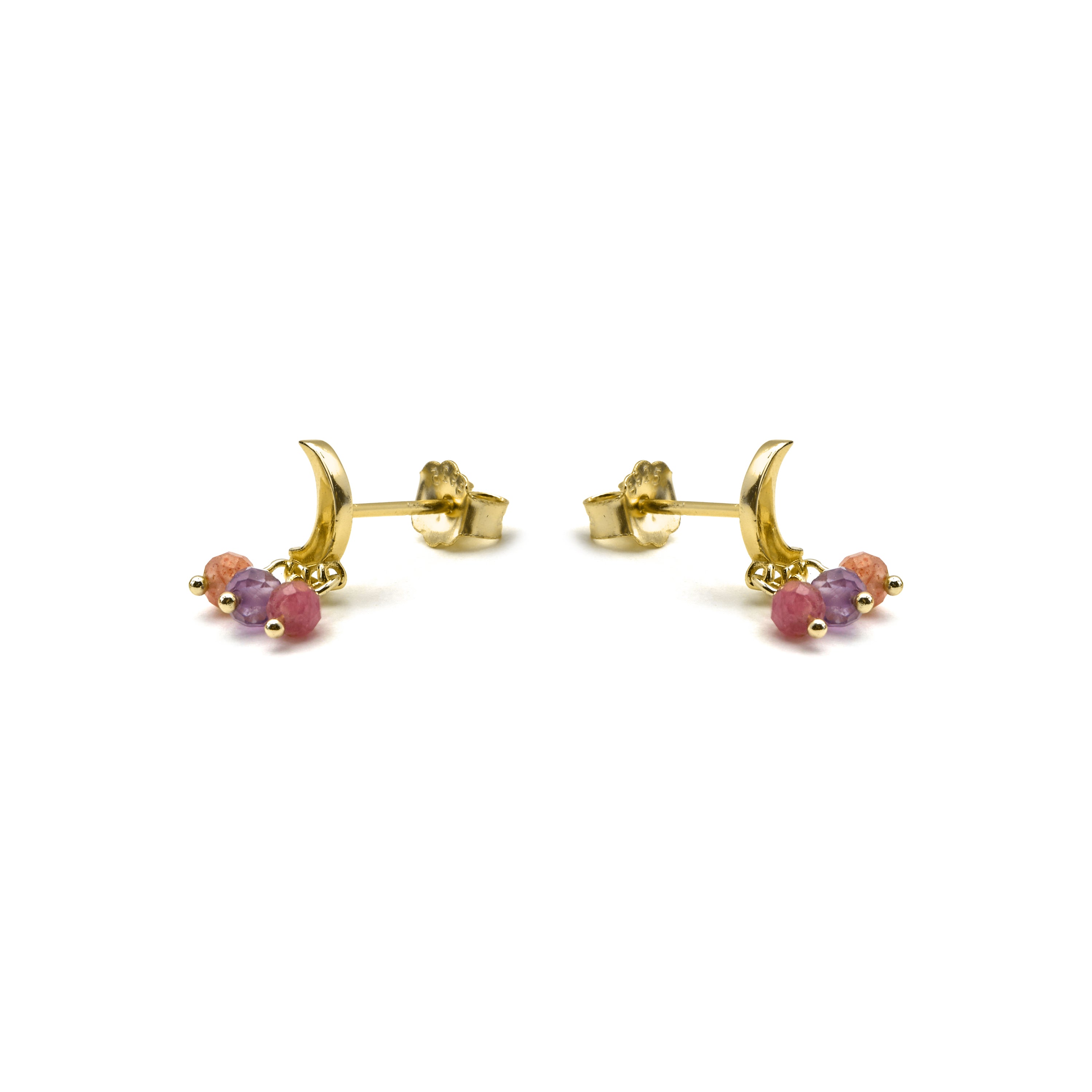 Pendientes Linshu cierre de Plata de Ley 925, abalorios y colgantes de metal y Cristal Rosa acabado oro 18k. Pide un deseo se caracteriza por diseños de carácter joven, repletos de significado y color, originales a la vez que discretos, que pretenden convertirse en pequeños amuletos.