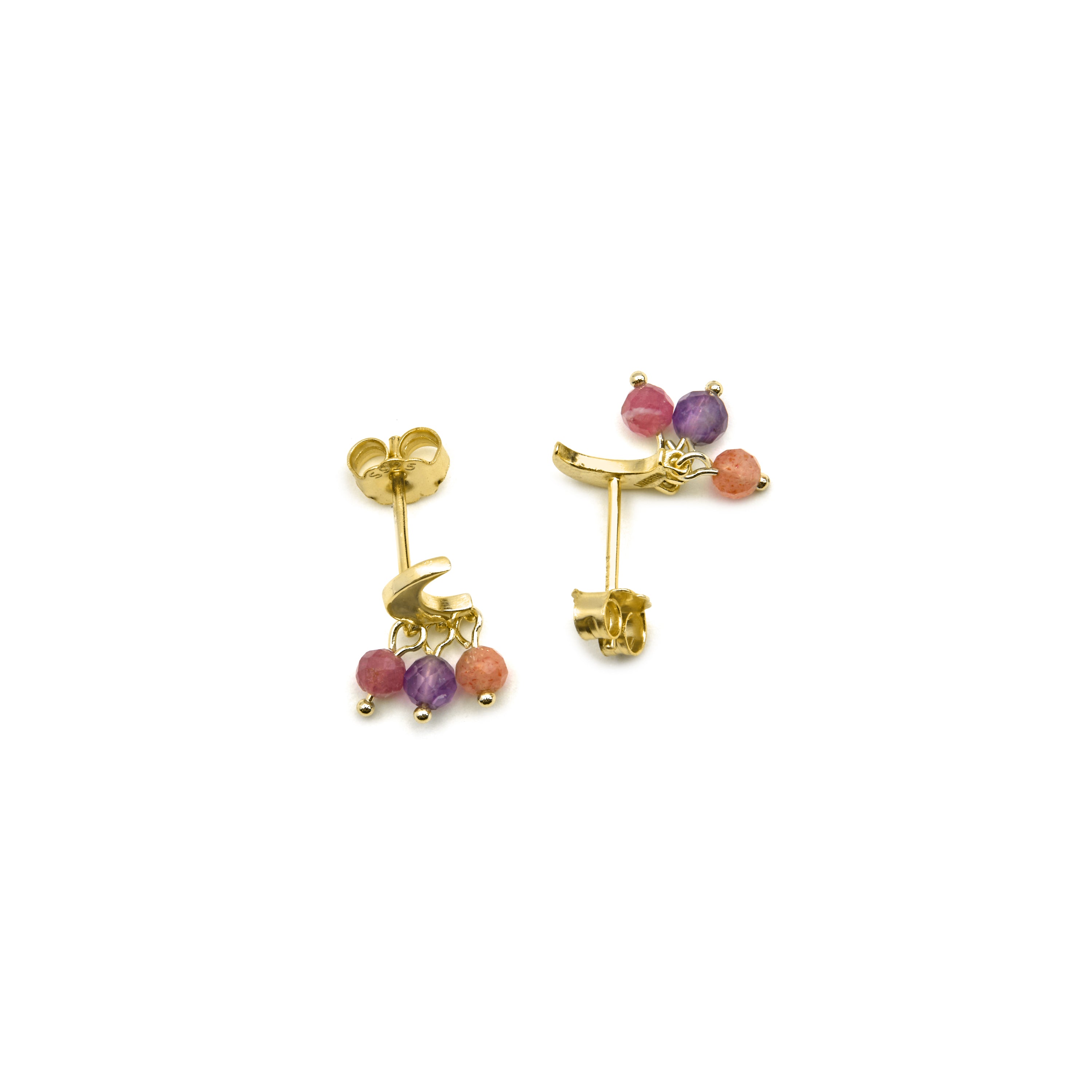 Pendientes de Plata de Ley 925 y Cristal Rosa acabado oro 18k - Linshu