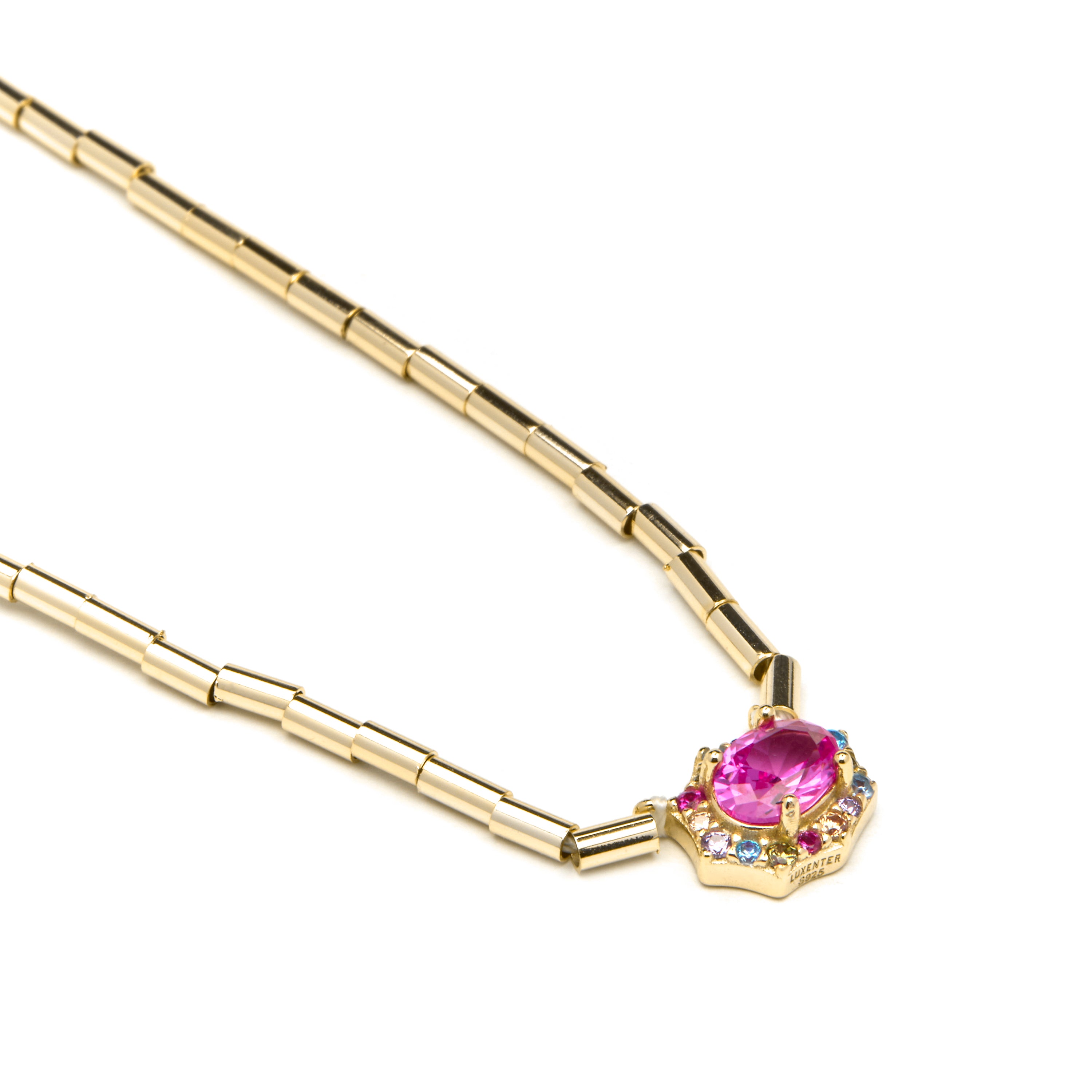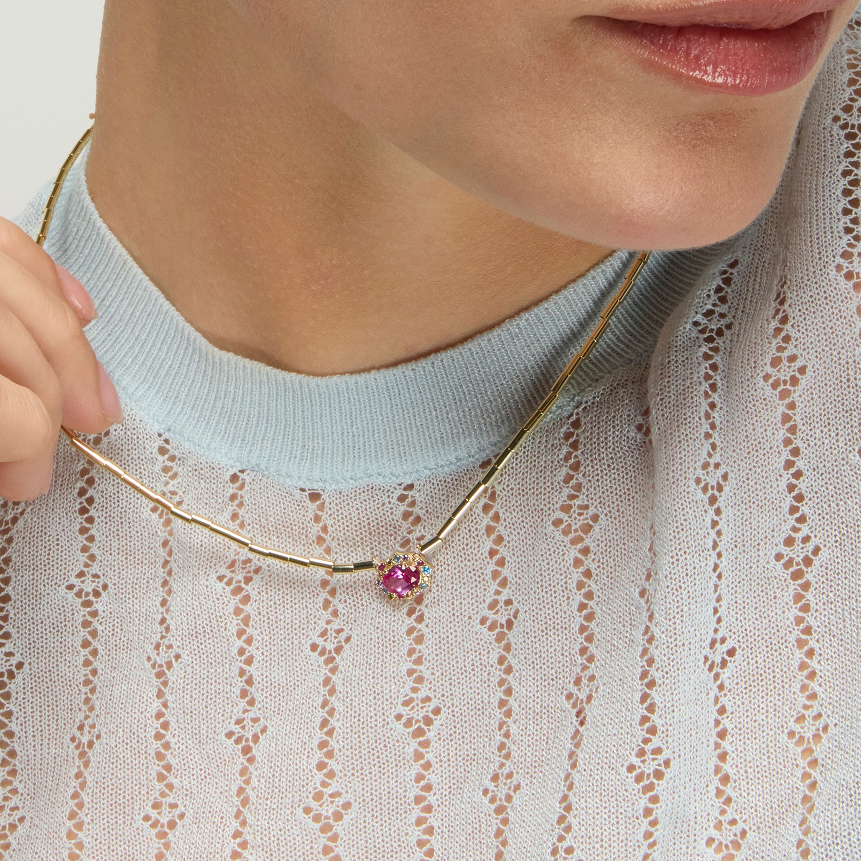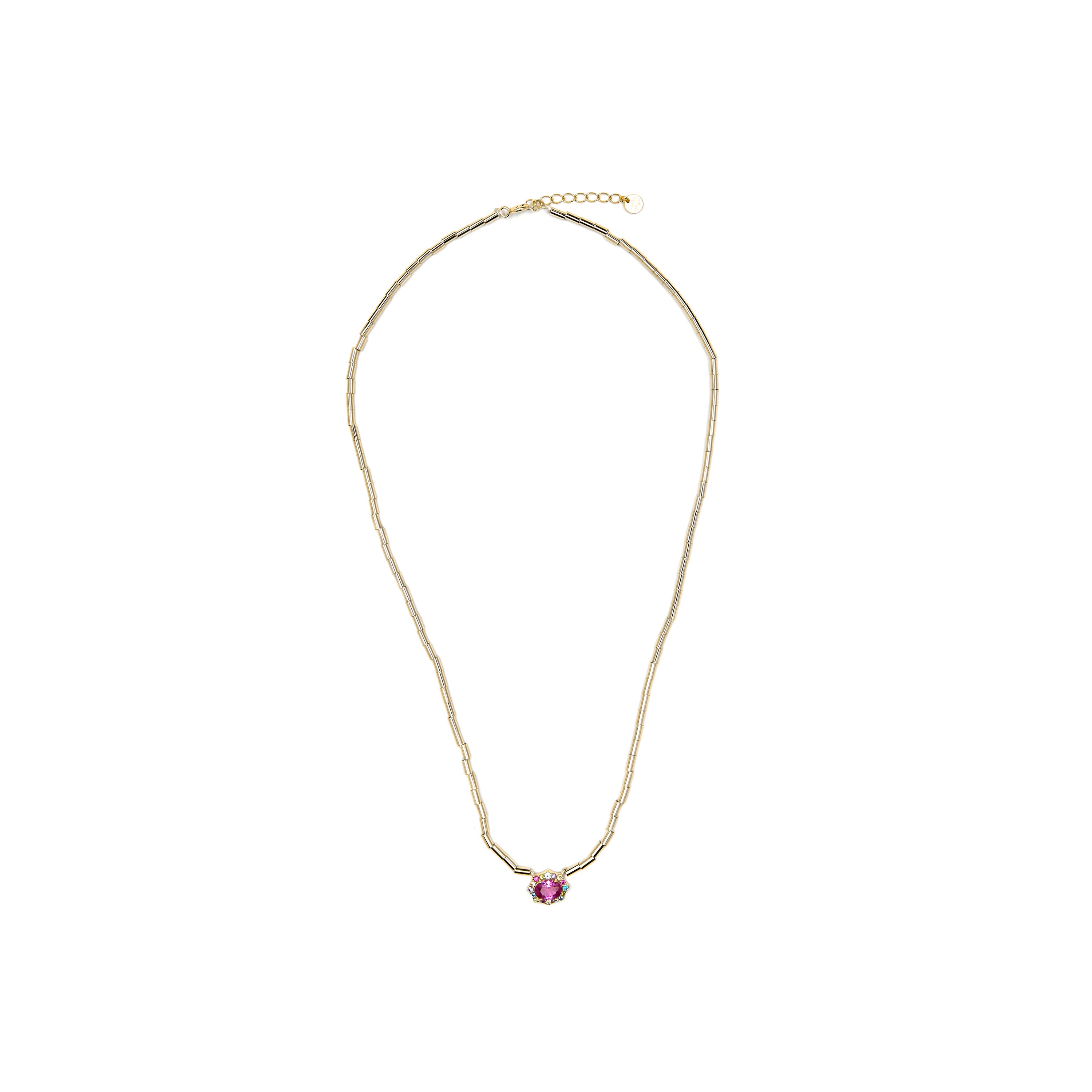 Collar Mezay de Plata de Ley 925 y Circonita Rubí acabado oro amarillo de 18k