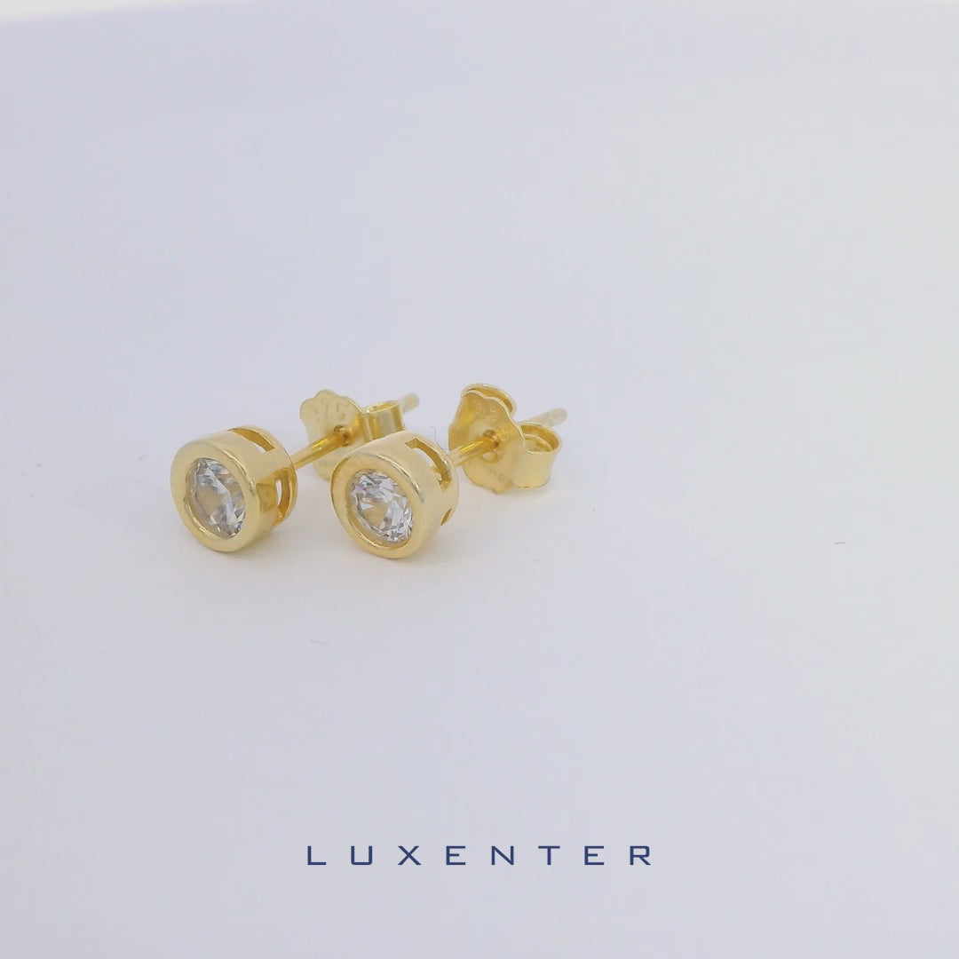 925 Sterling Silver Earrings with Brilliant Zirconia finished in 18K yellow gold - Imrak