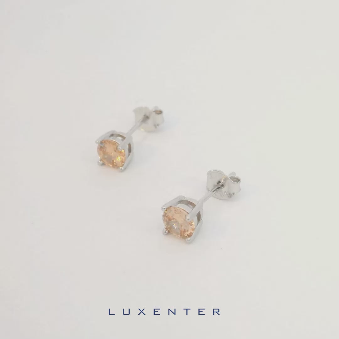 925 Sterling Silver Earrings with Champagne Zirconia Rhodium Finish - Iona