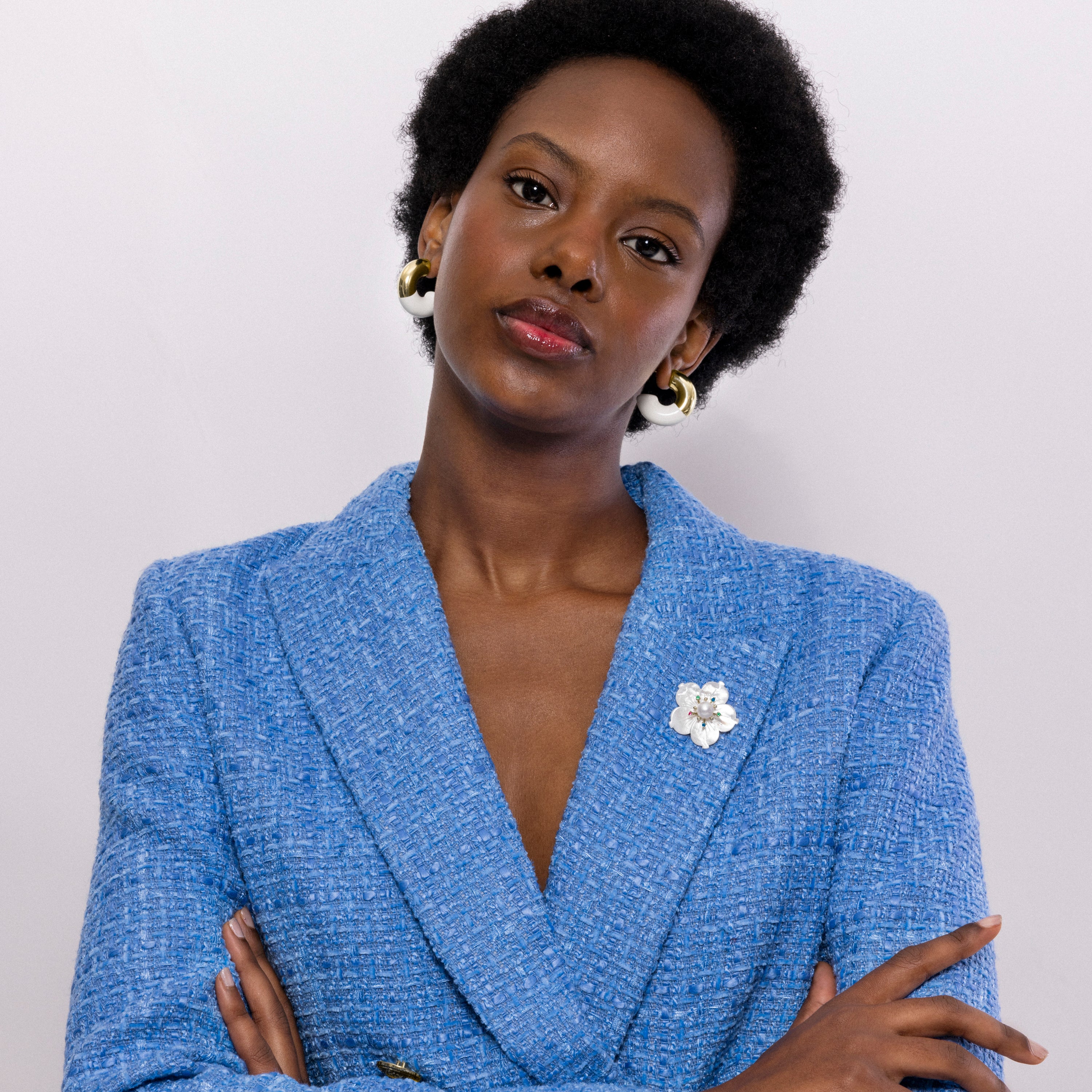 Broche Flor con Madreperla Blanca acabados en oro amarillo de 18K. África se convierte en la línea perfecta para mujeres con personalidad, que no temen arriesgar y lucir piezas con carácter propio.