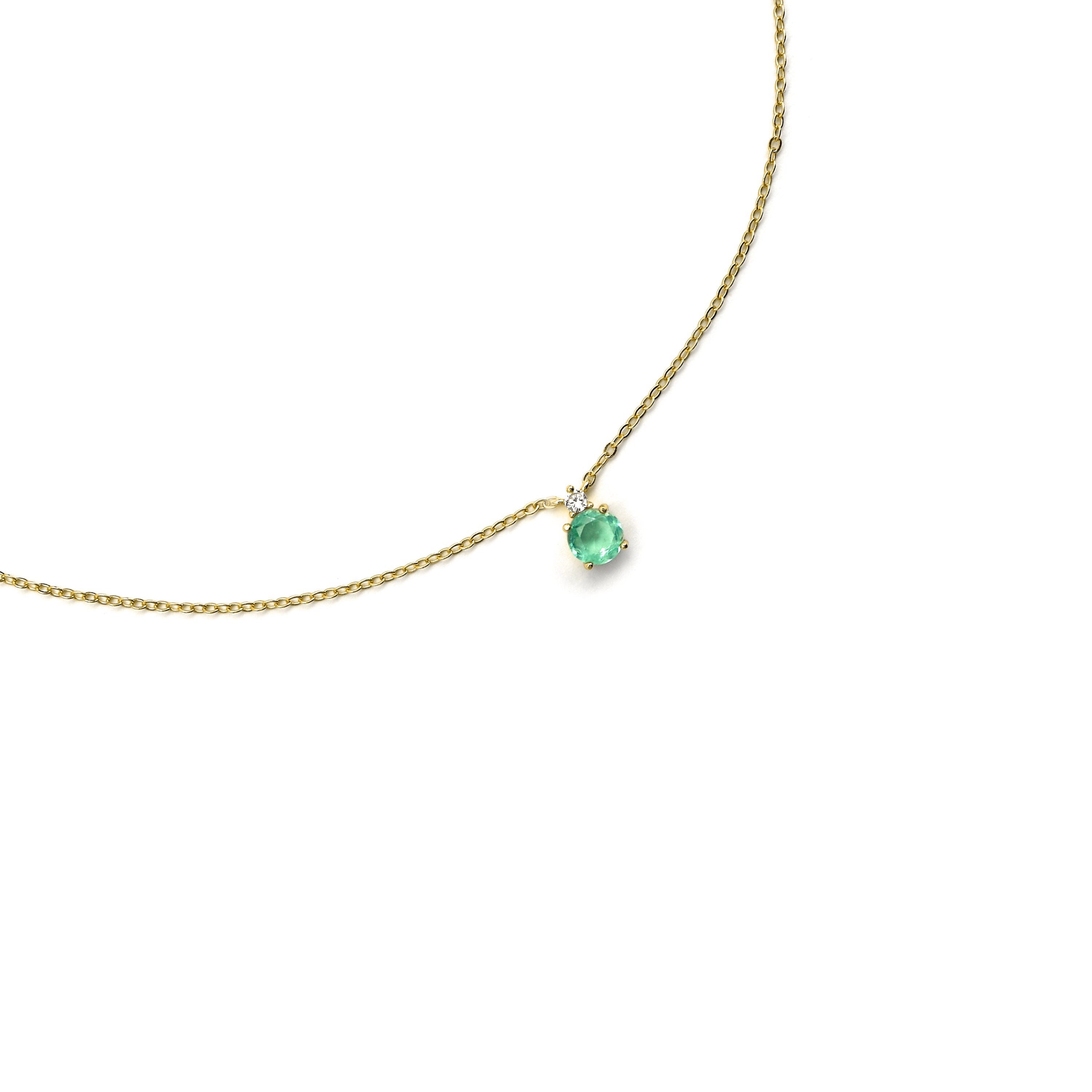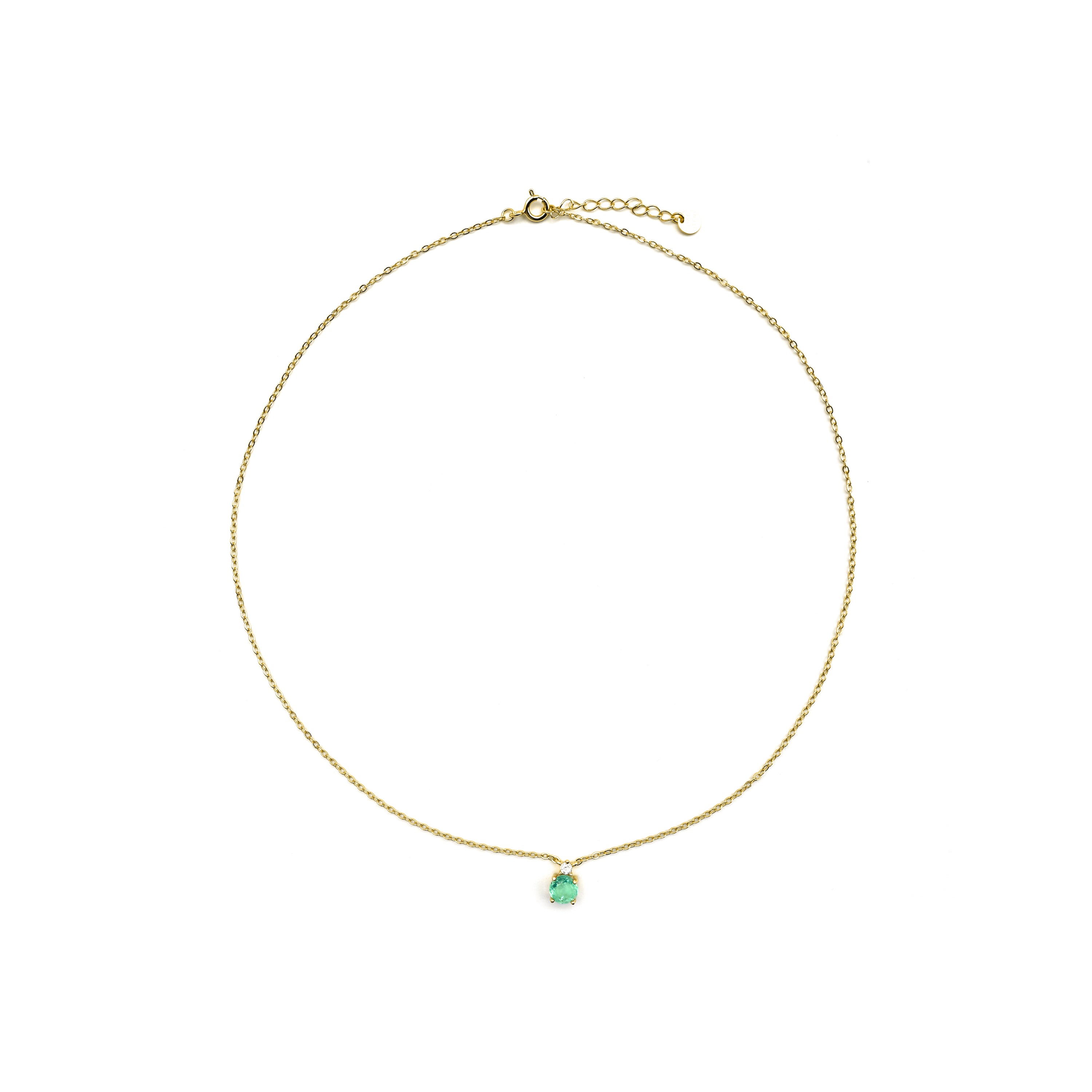 Collar de Plata de Ley 925 y Cuarzo Hidrotermal Verde Pastel acabado oro 18k - Akma