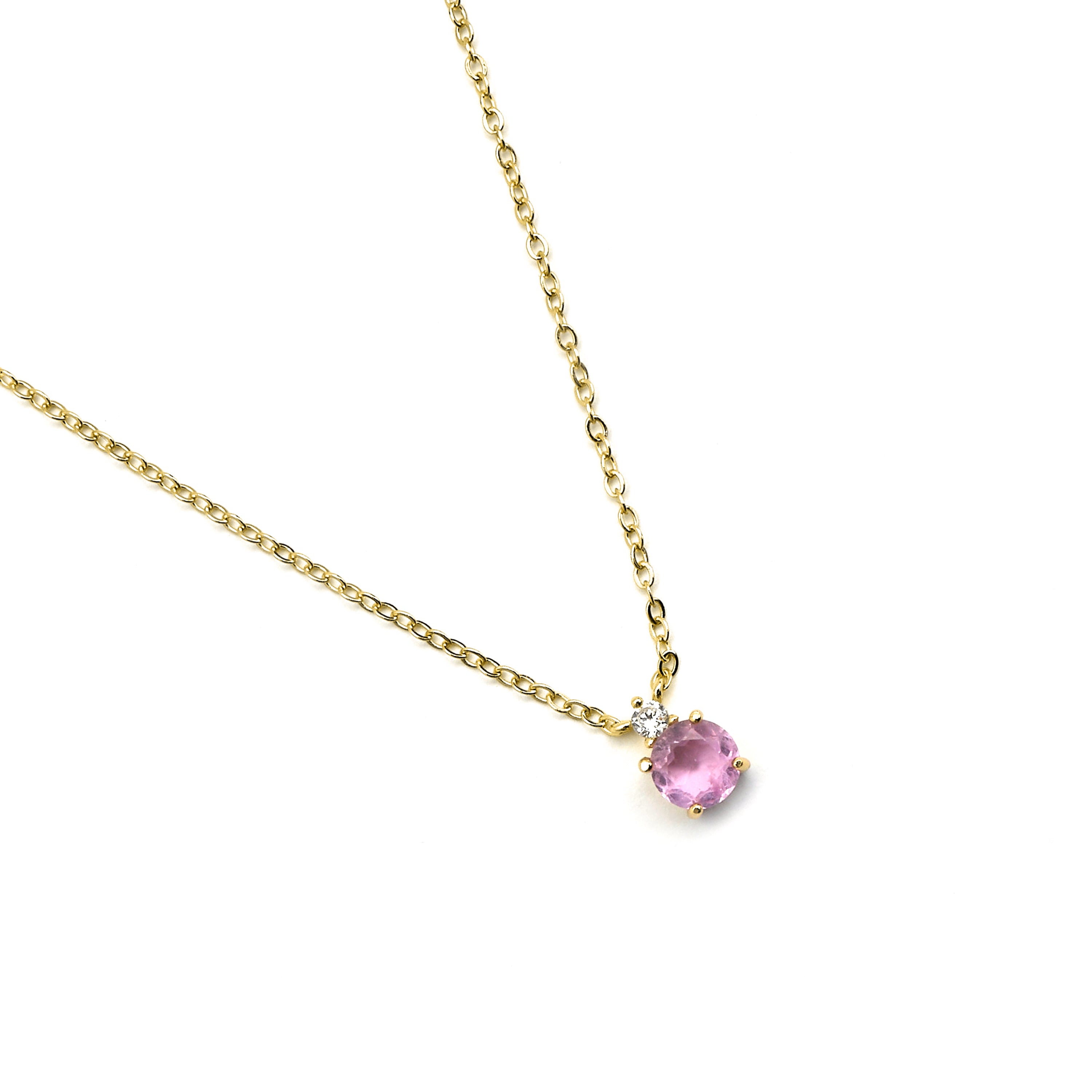 Collar de Plata de Ley 925 y Cuarzo Hidrotermal Kunzita acabado oro 18k - Akma