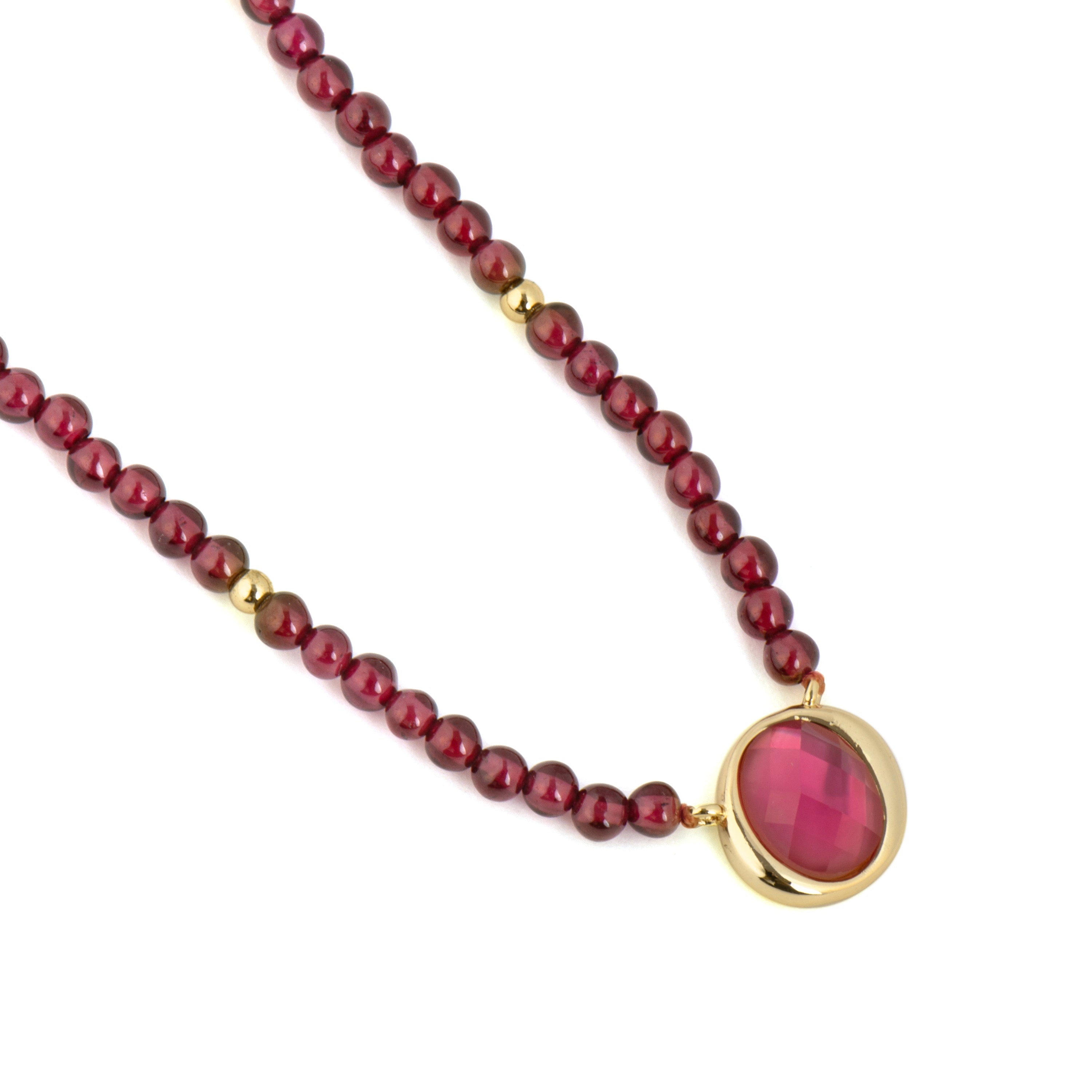 Collar de Plata de Ley 925 y Cuarzo Hidrotermal Cereza / Madreperla acabado en oro amarillo 18k - Alqua