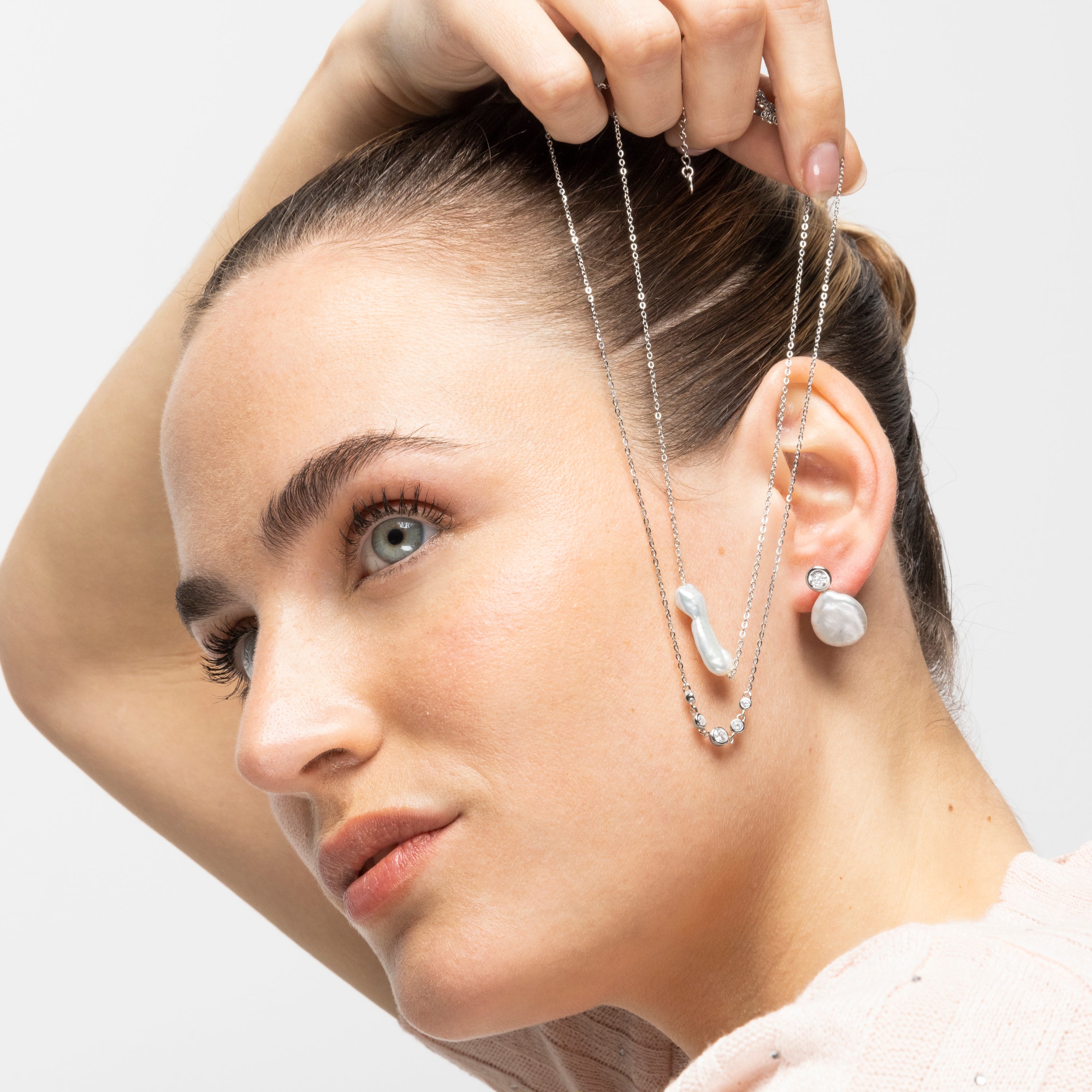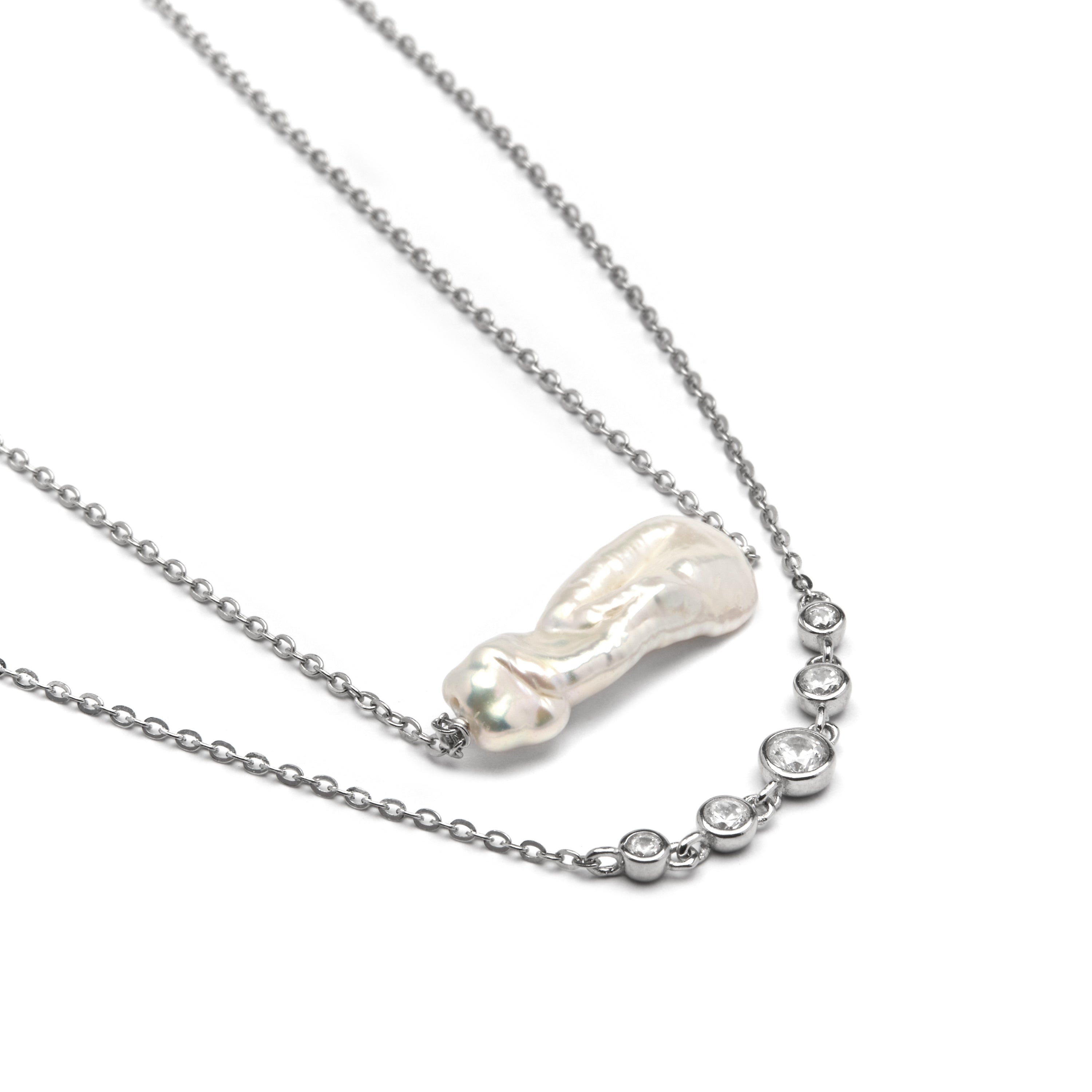 Collar de Plata de Ley 925 y Perla Blanca acabado rodio - Danysda