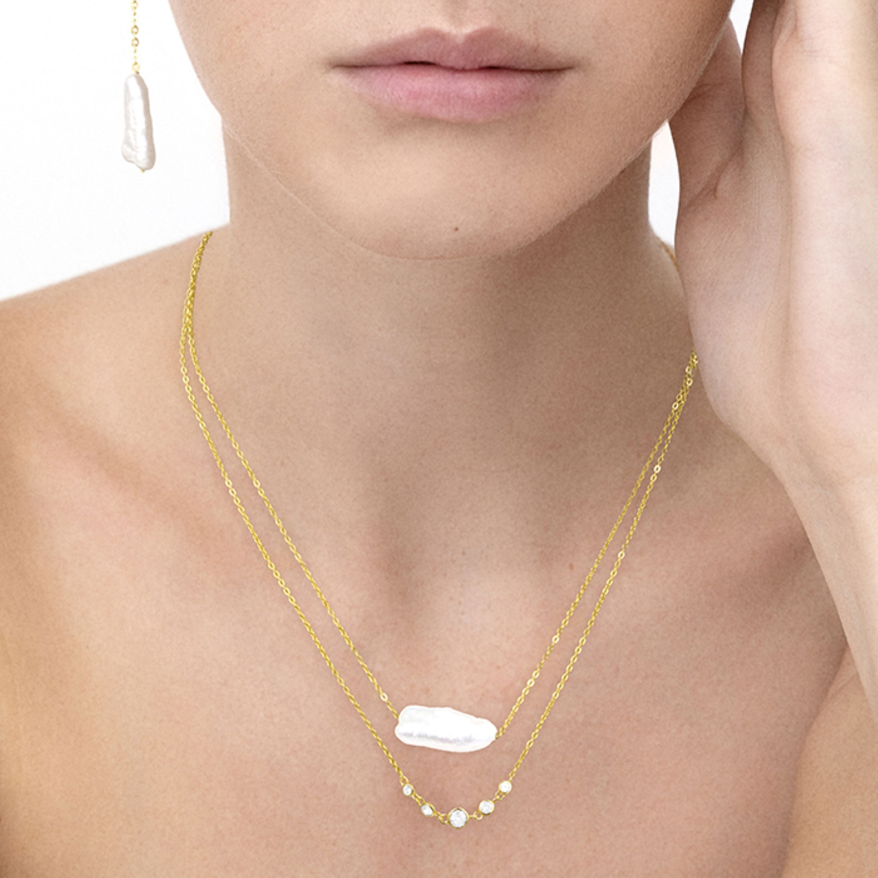 Collar de Plata de Ley 925 con Perla Blanca acabado en oro amarillo de 18K - Danysda